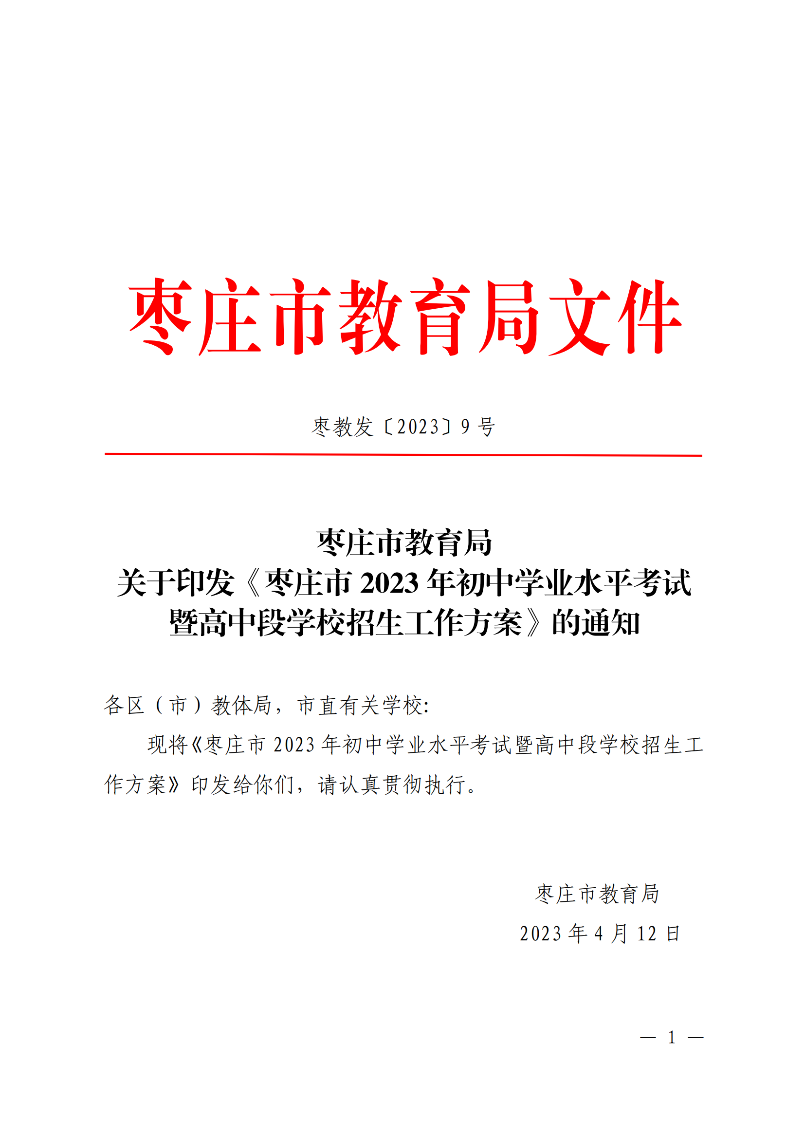 原文标题:枣庄市教育局关于印发2023年初中学业水平考试暨高中段学校招生工作方案的通知
