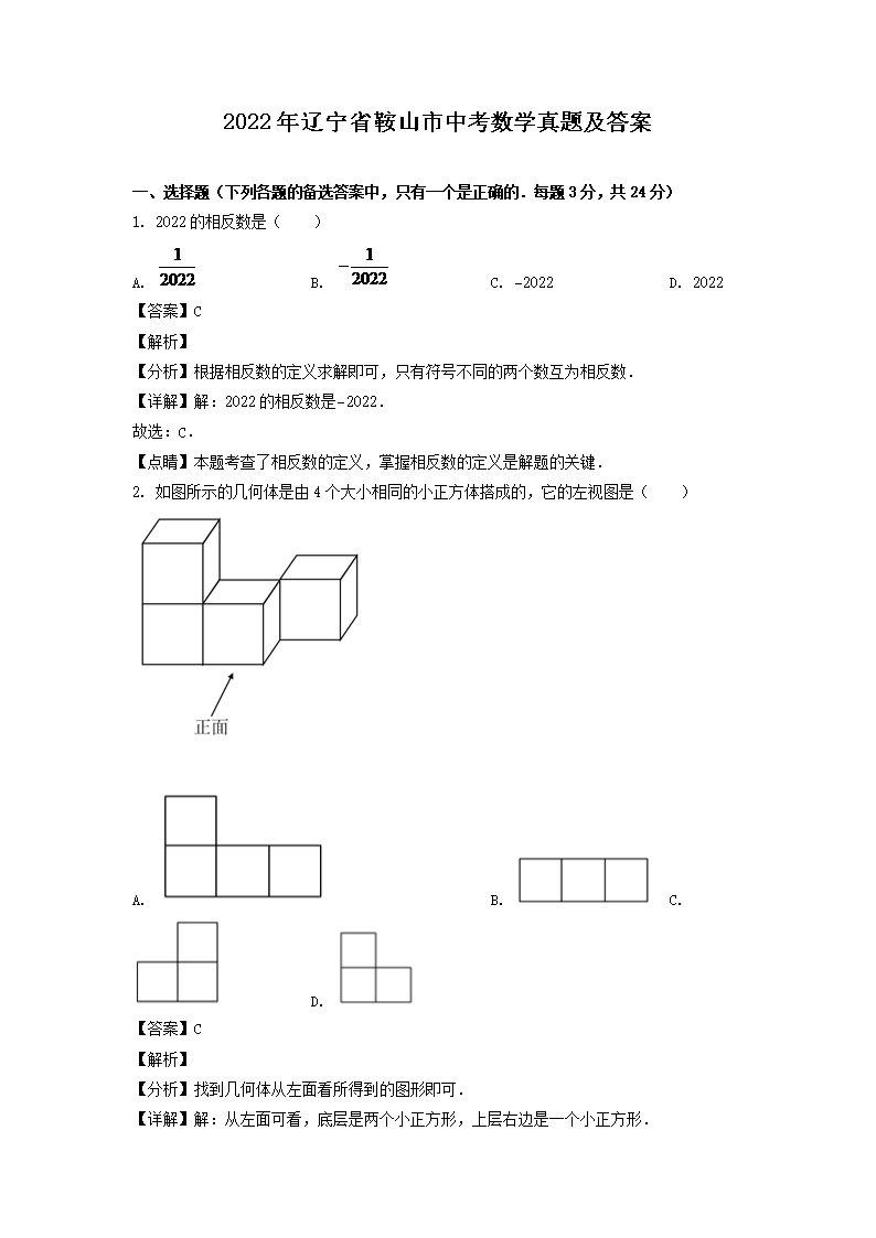【文档名称】 2022年辽宁省鞍山市中考数学真题及答案(Word版).doc