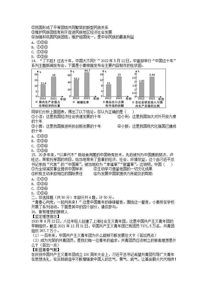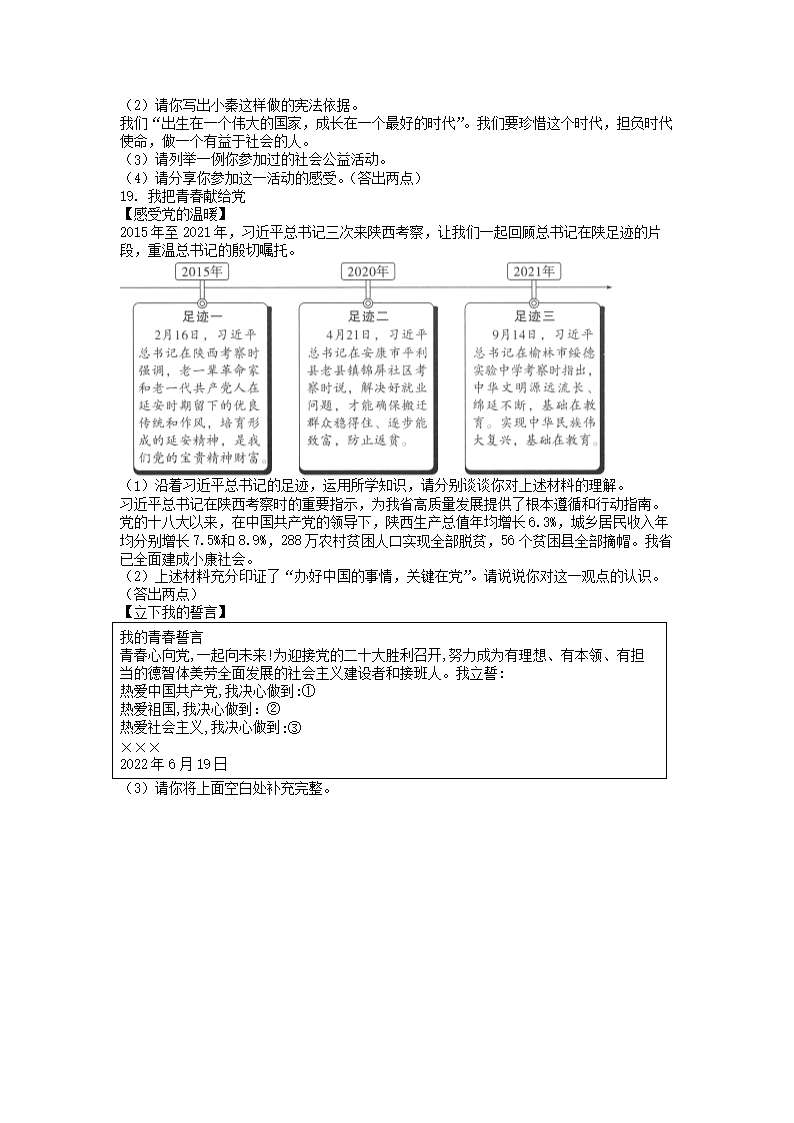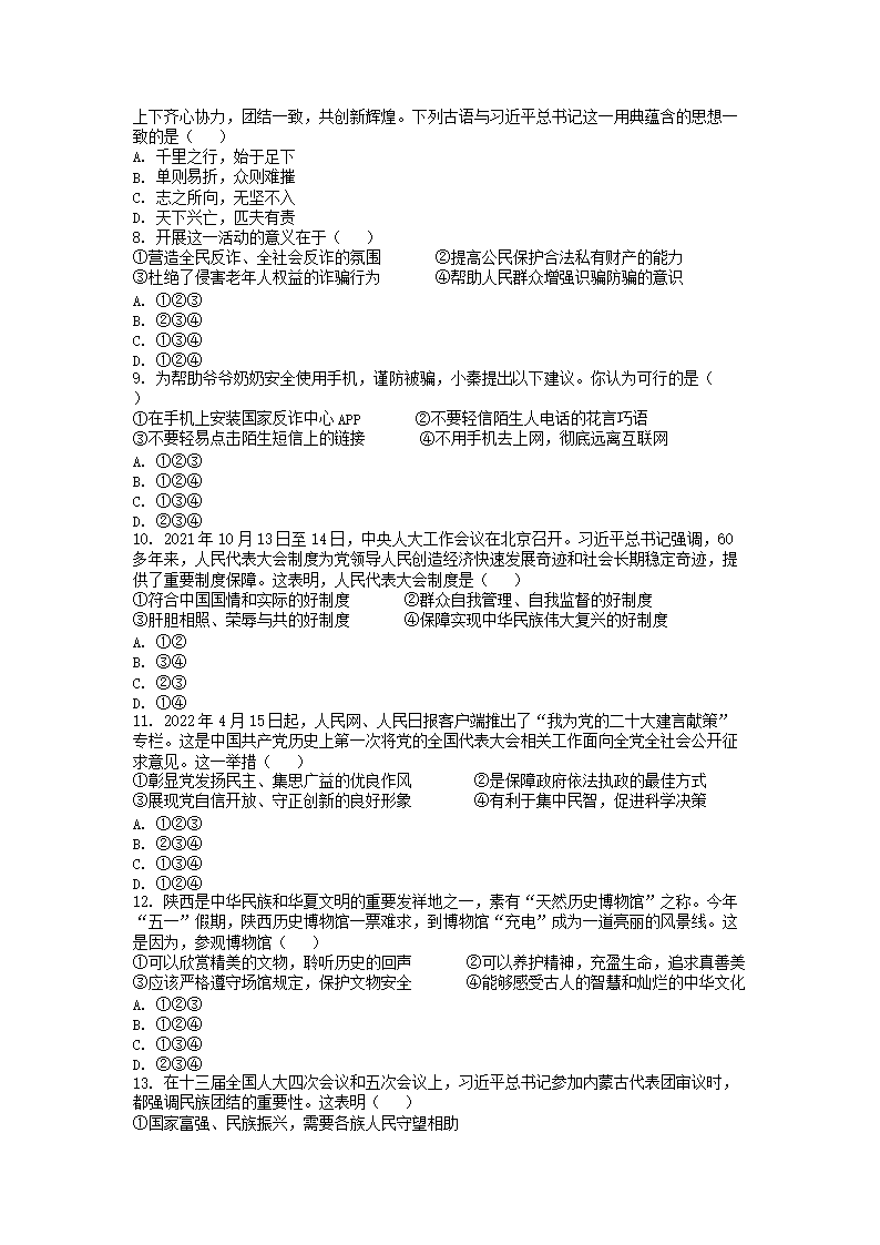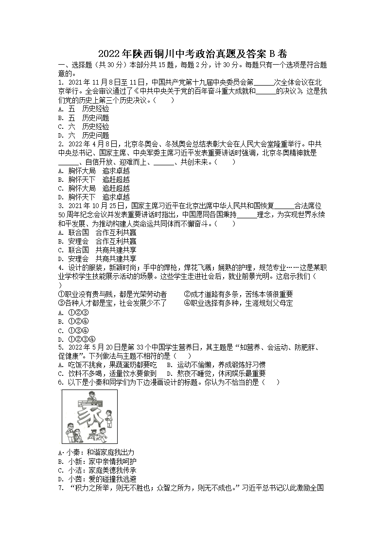 【文档名称】 2022年陕西铜川中考政治真题及答案B卷(Word版).doc