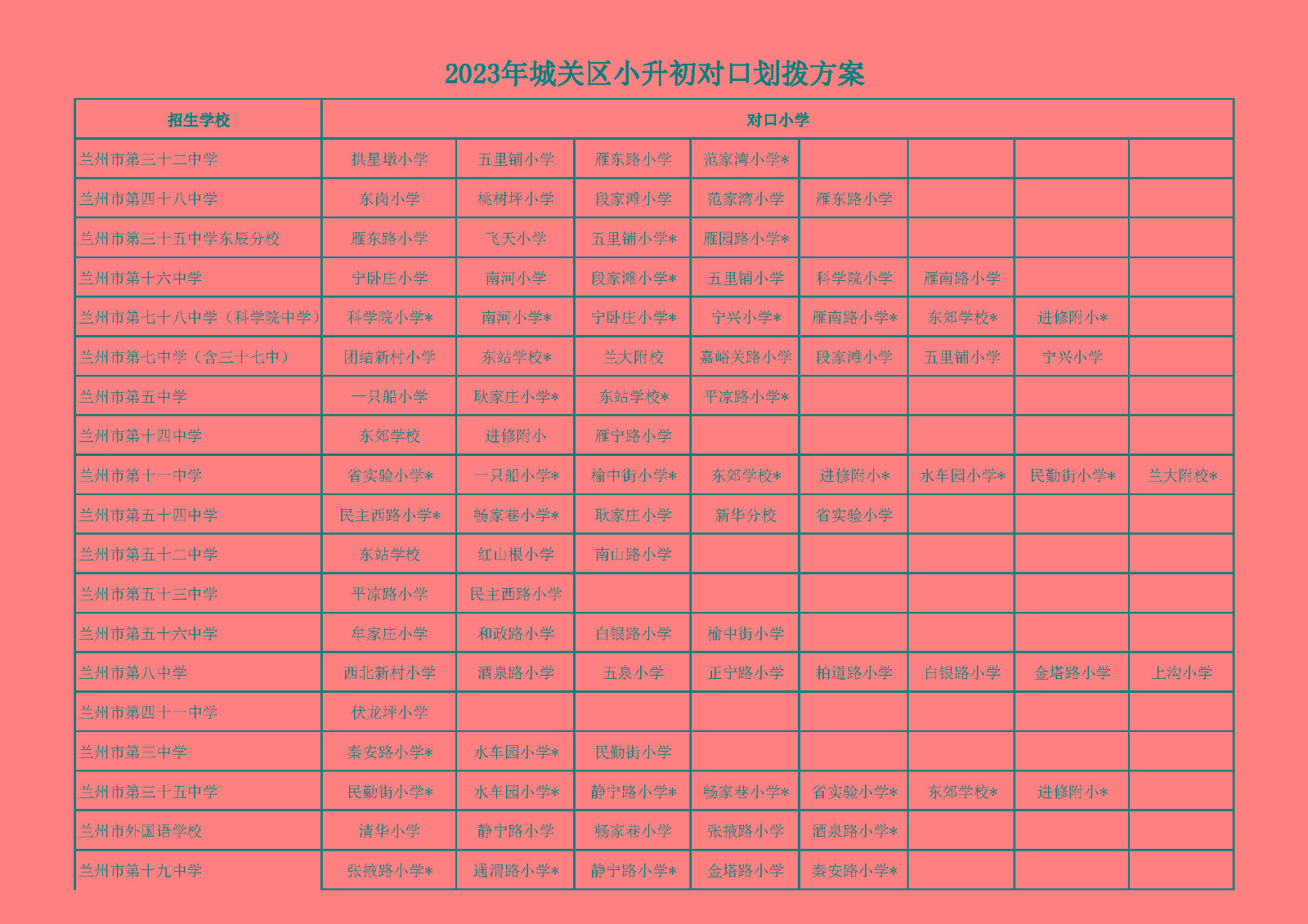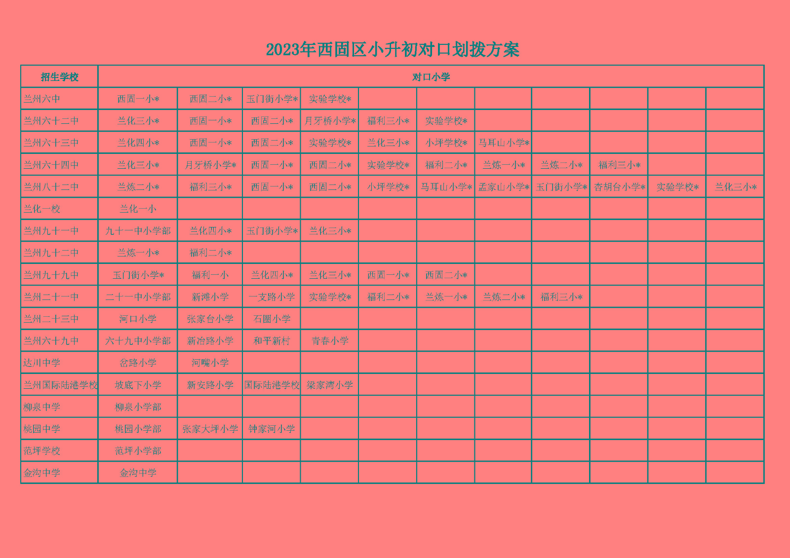 原文标题:2023年兰州市城市四区小升初对口划拨方案说明