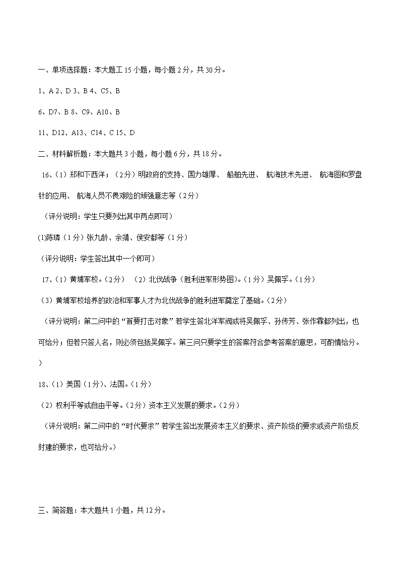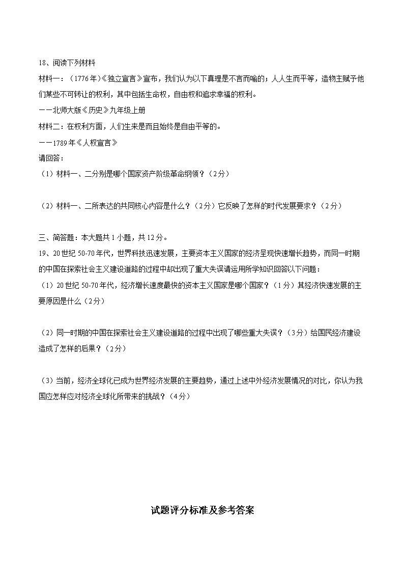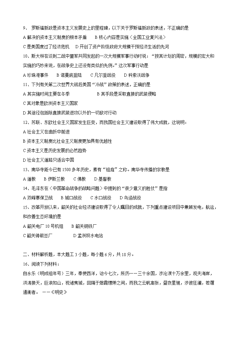 【文档名称】 2007年广东省韶关市中考历史试题及答案(Word版).doc