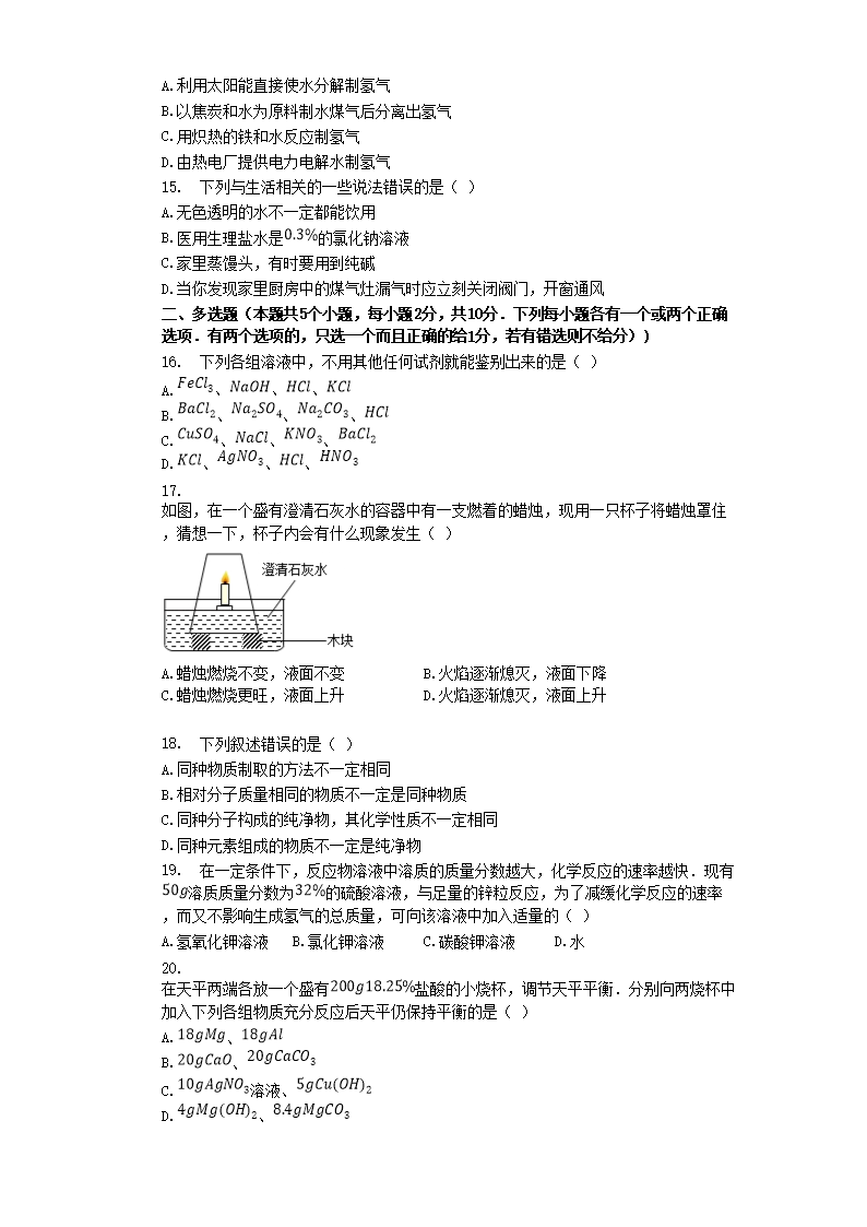 【文档名称】 2002年黑龙江牡丹江市中考化学真题及答案(Word版).doc