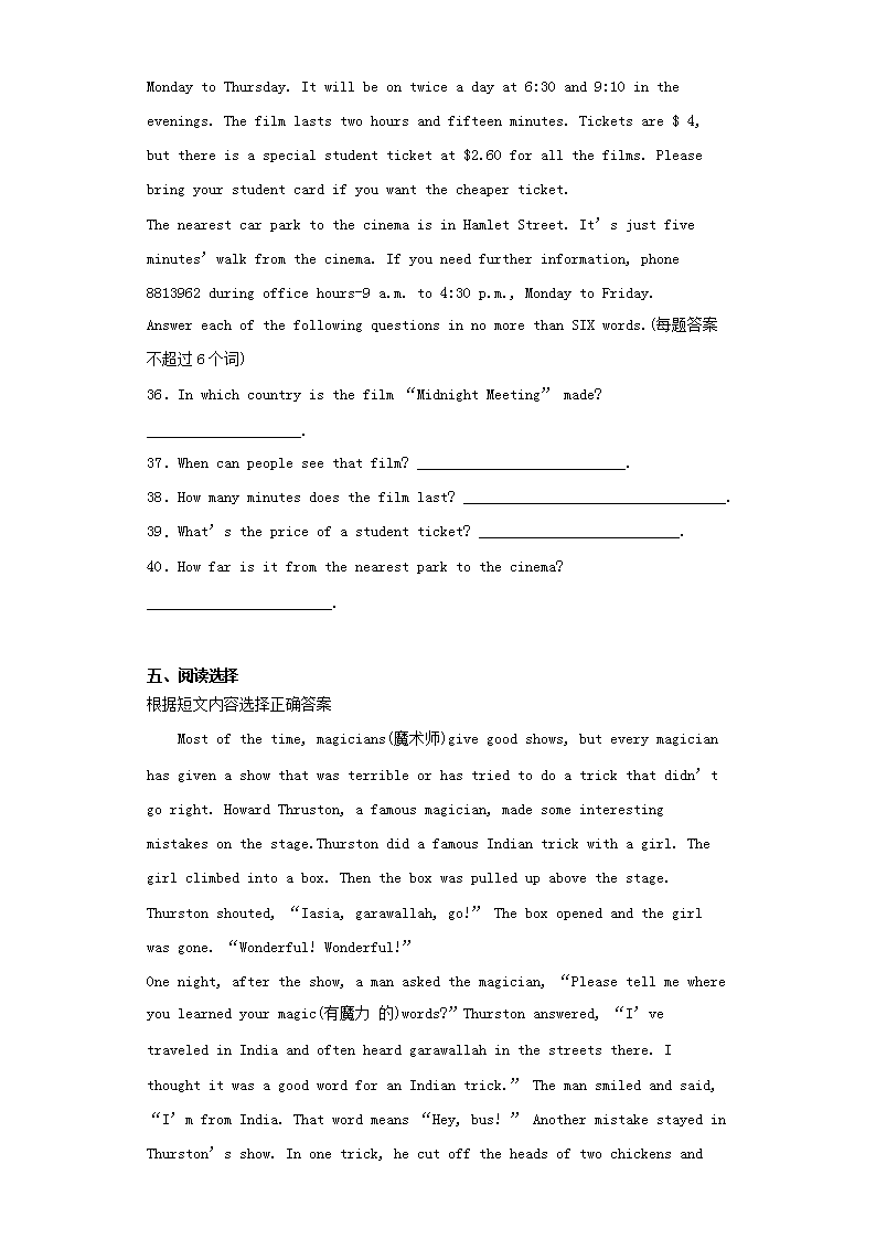 【文档名称】 2018年北京市朝阳区小升初英语考试真题及答案解析(Word版).doc