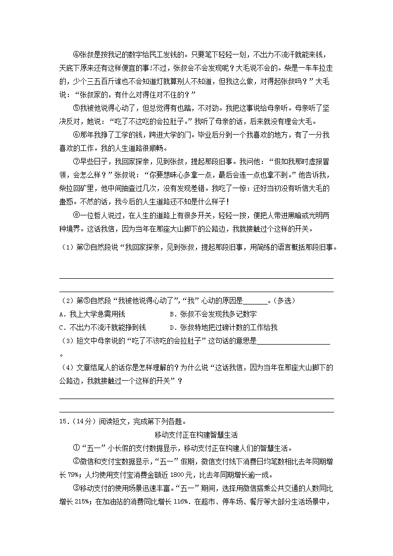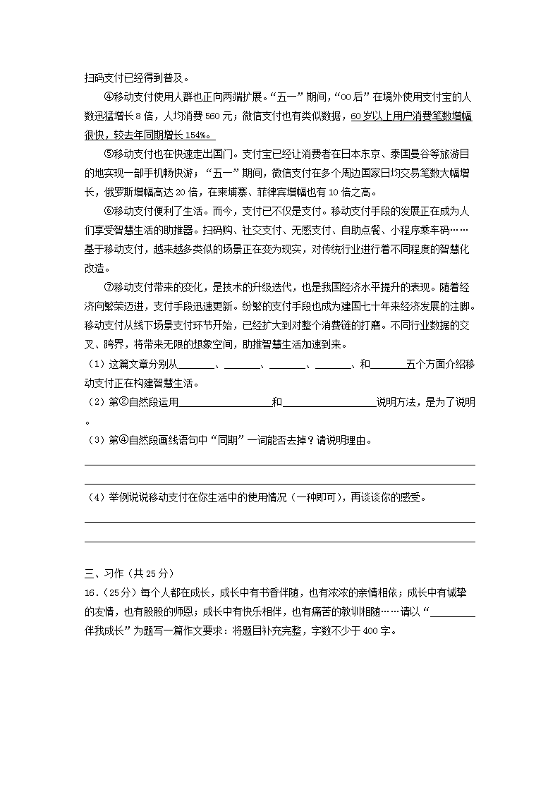【文档名称】 2019年北京市朝阳区小升初语文考试真题及答案解析(Word版).doc