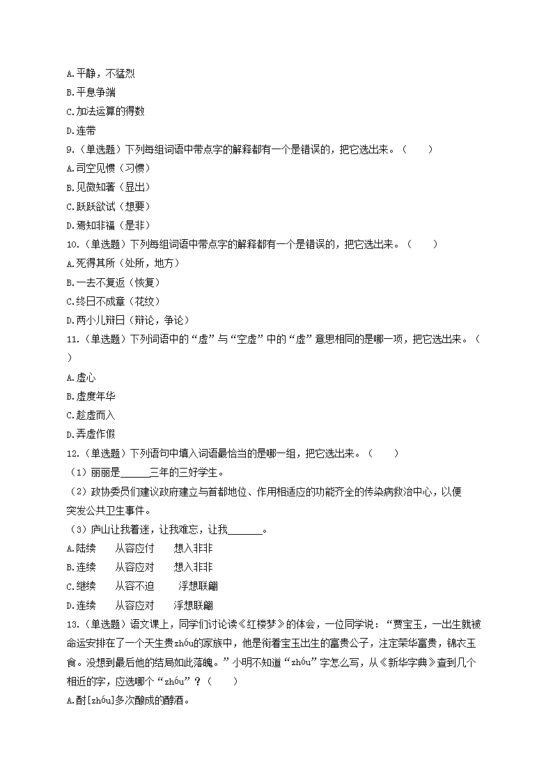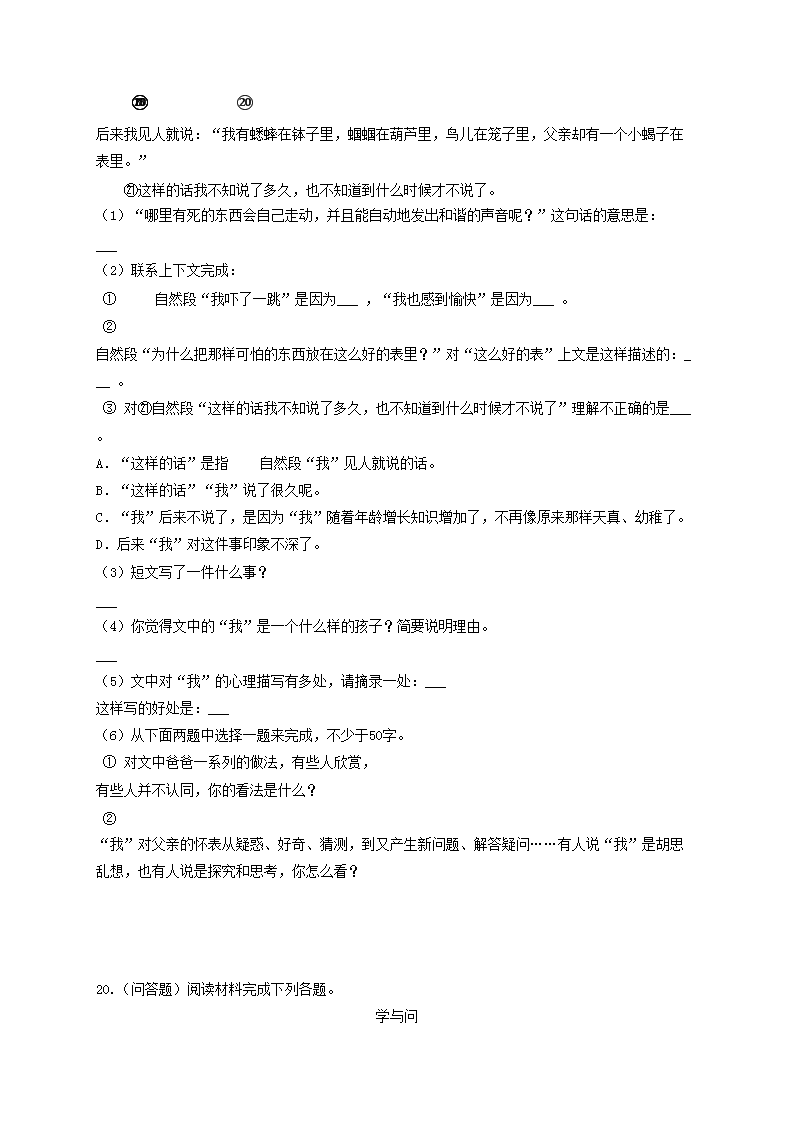 【文档名称】 2020年北京市顺义区小升初语文考试真题(Word版).doc