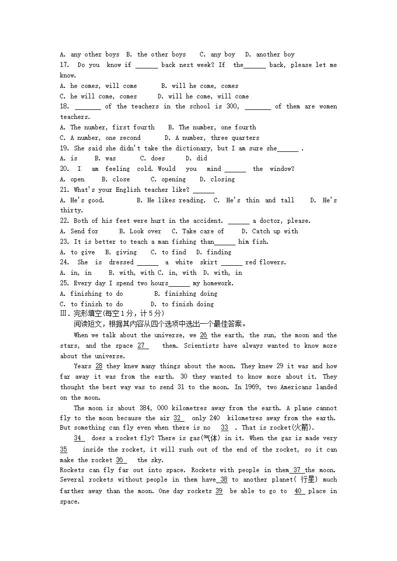 【文档预览】 无忧考网整理发布2002年黑龙江伊春市中考英语真题及答案(Word版),前五页预览如下: