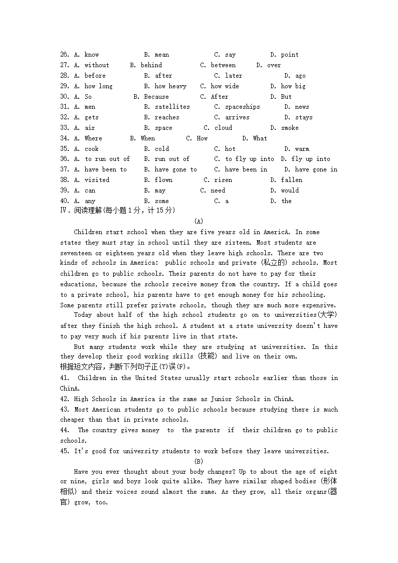 【文档名称】 2002年黑龙江伊春市中考英语真题及答案(Word版).doc