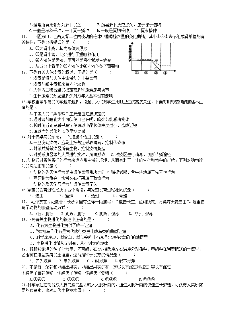 【文档名称】 2012年河南焦作中考生物真题及答案(Word版).doc