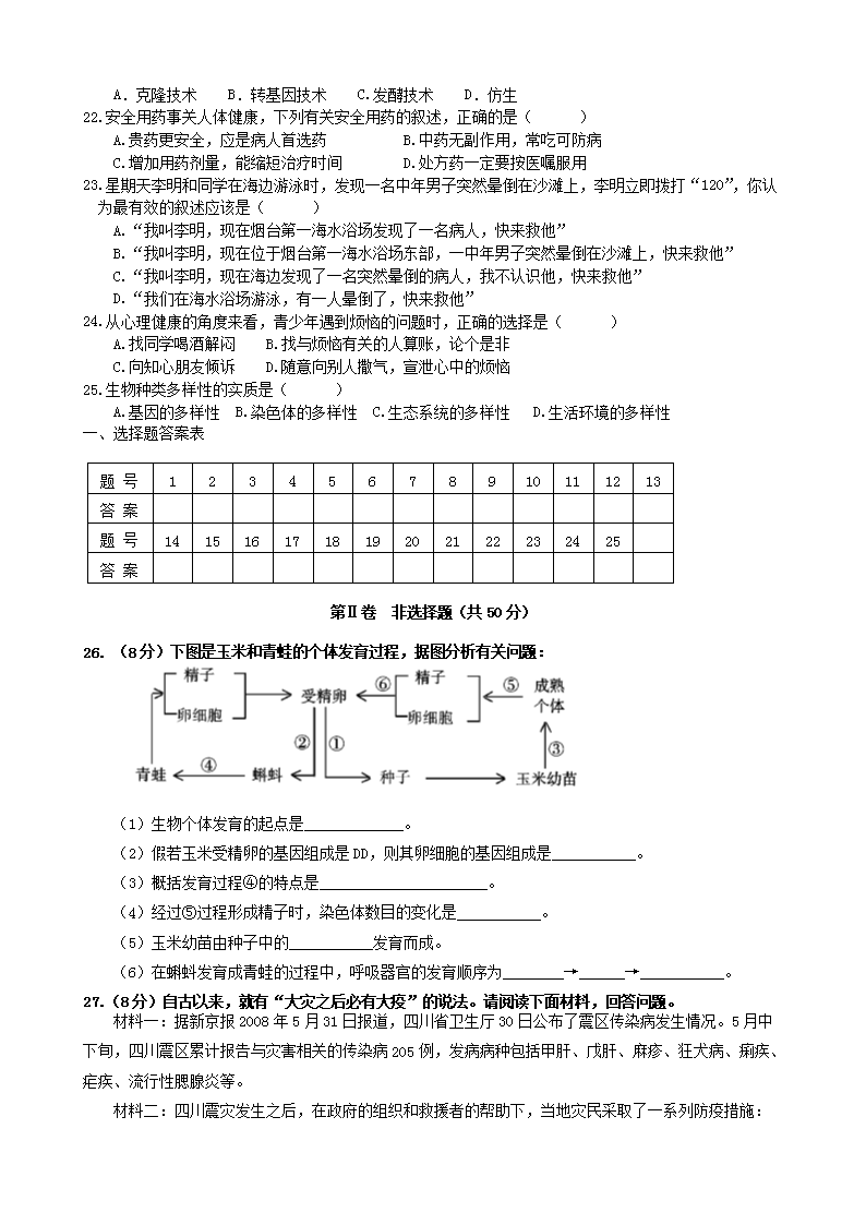 【文档预览】 无忧考网整理发布2012年河南驻马店中考生物真题及答案(Word版),前五页预览如下:
