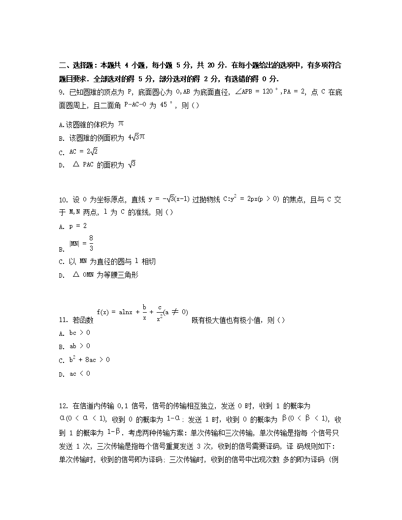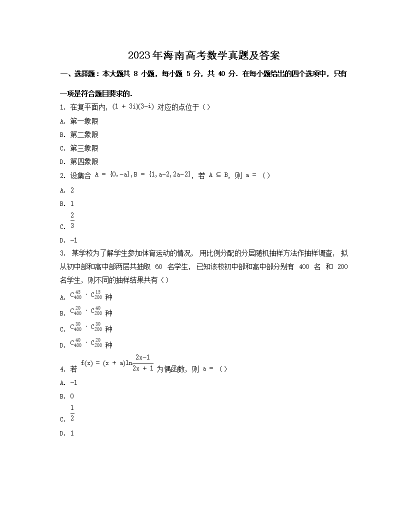 【文档名称】 2023年海南高考数学真题及答案(Word版).doc