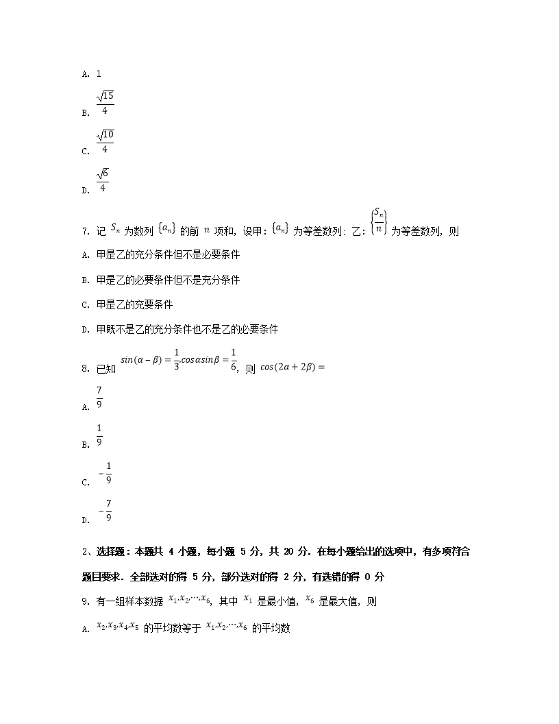 【文档名称】 2023年广东高考数学真题及答案(Word版).doc