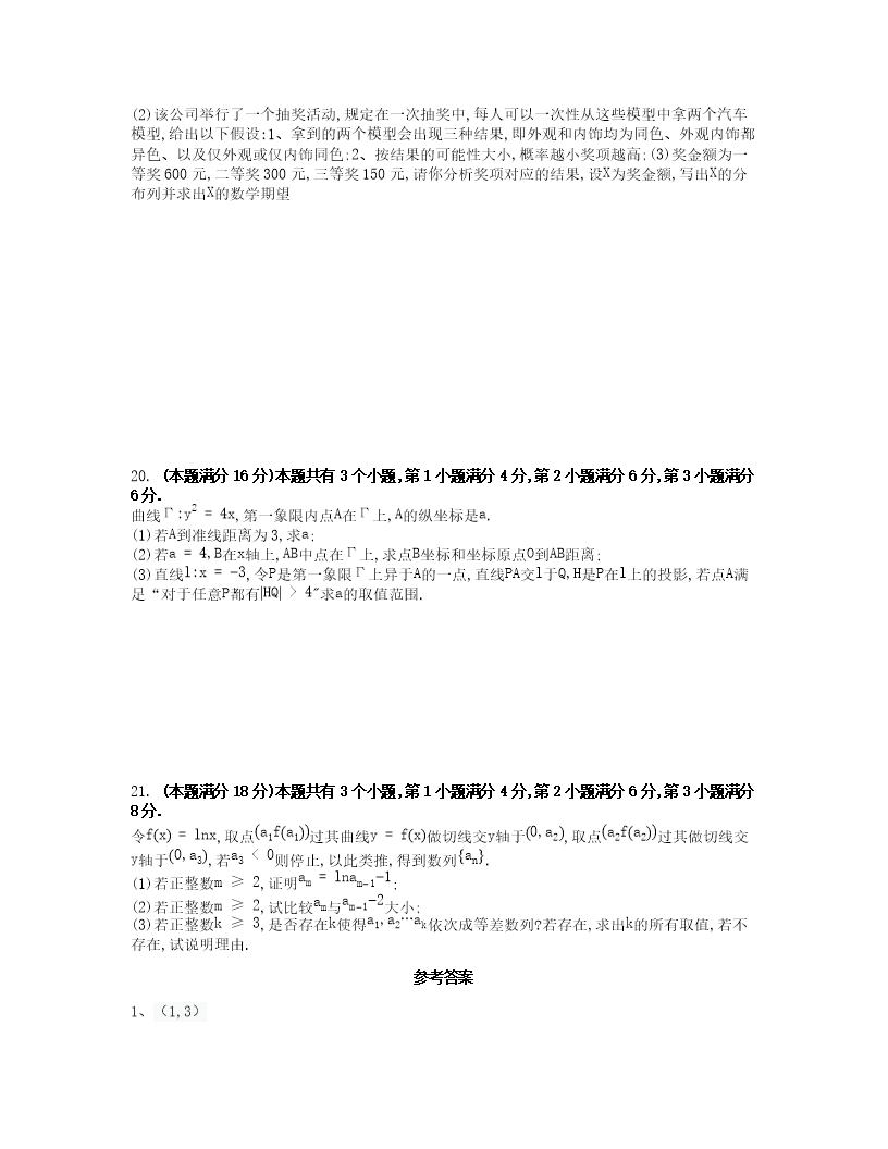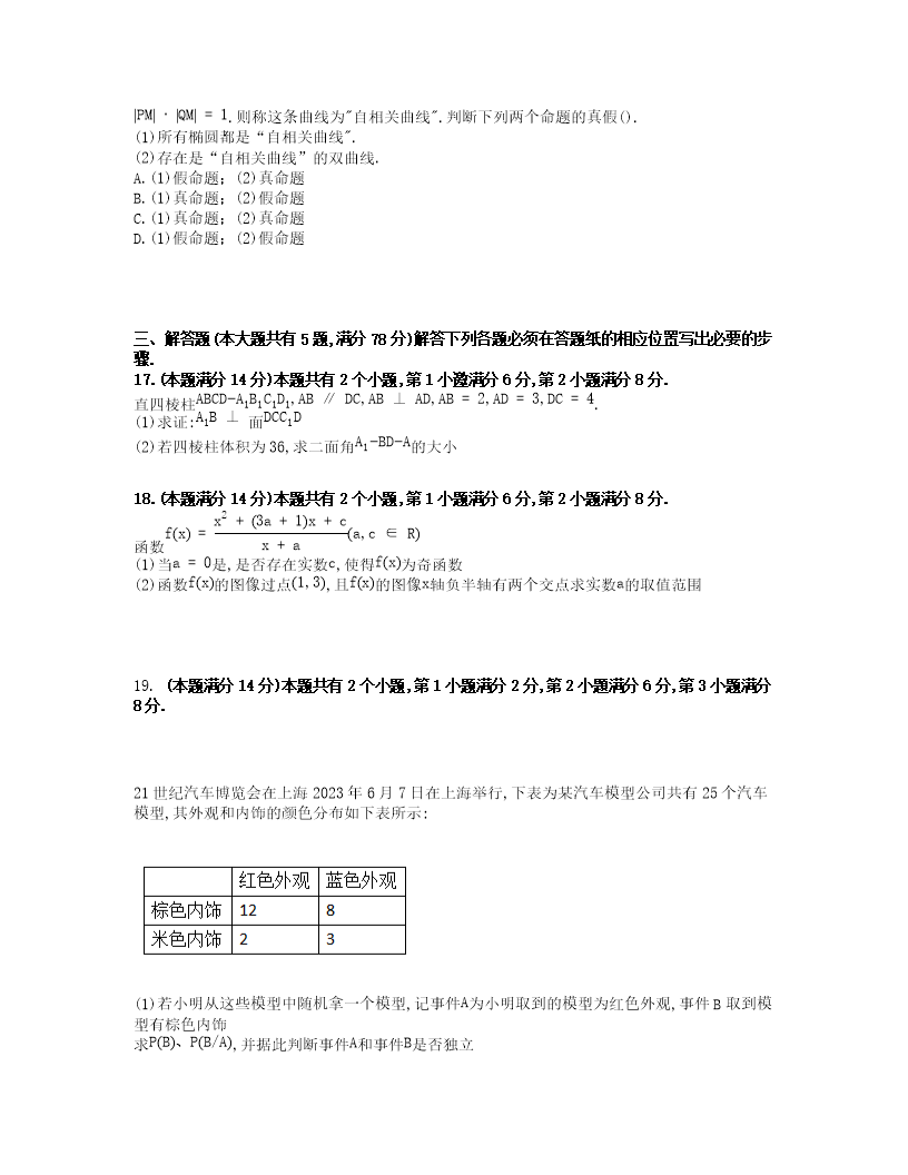 【文档名称】 2023年上海高考数学真题及答案(Word版).doc