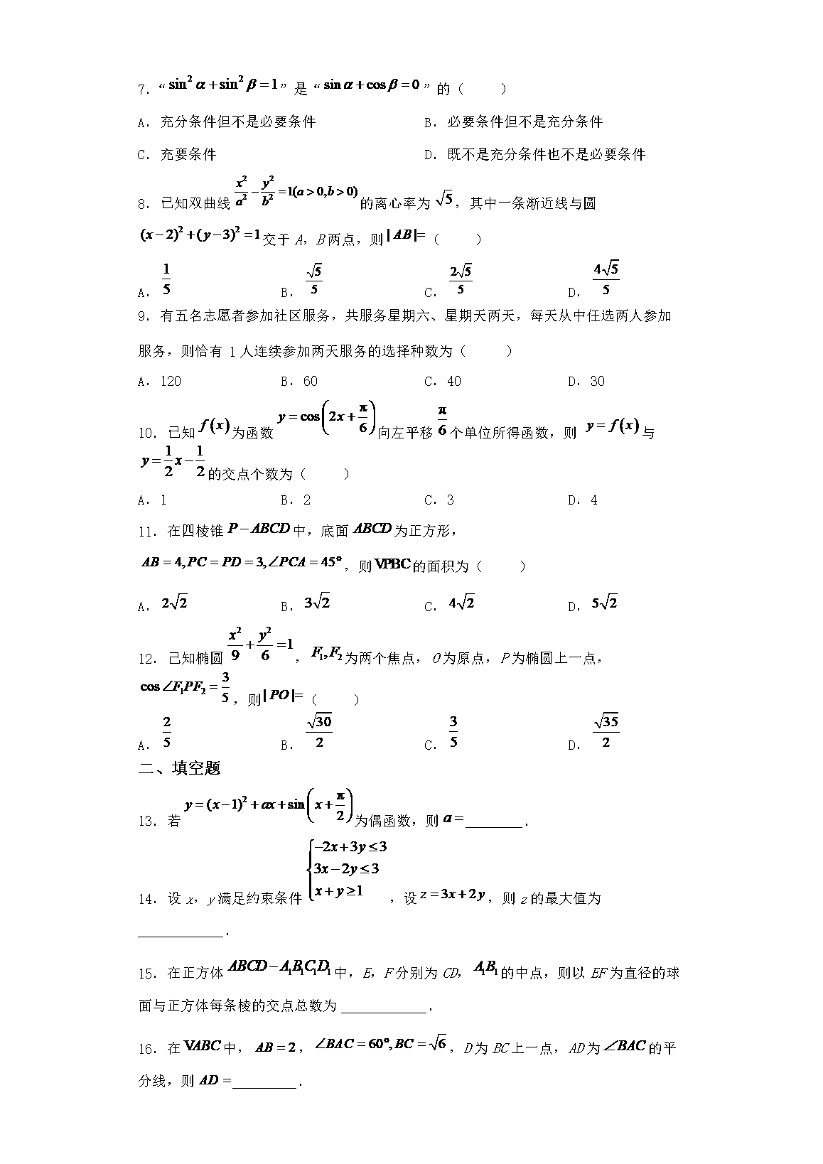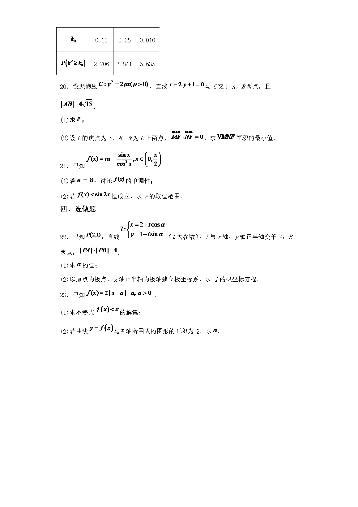 【文档名称】 2023年四川高考数学(理)真题及答案(Word版).doc