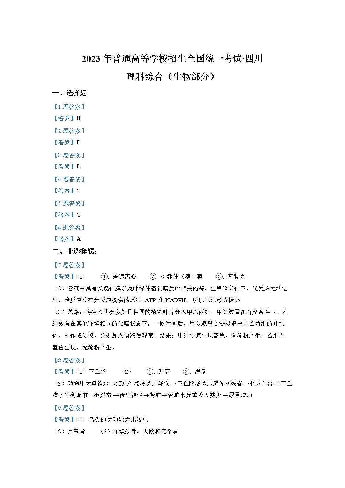 【文档名称】 2023年四川高考生物真题及答案(Word版).doc