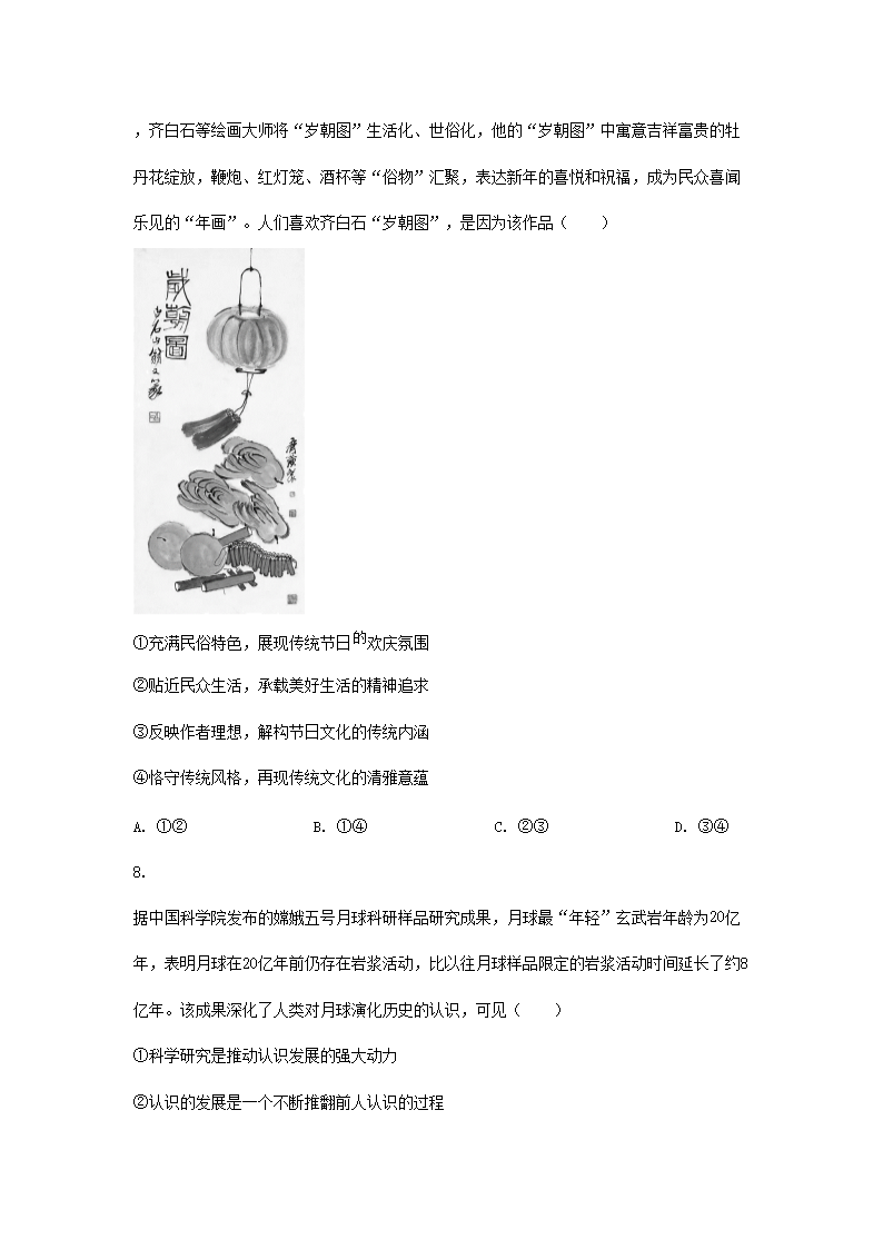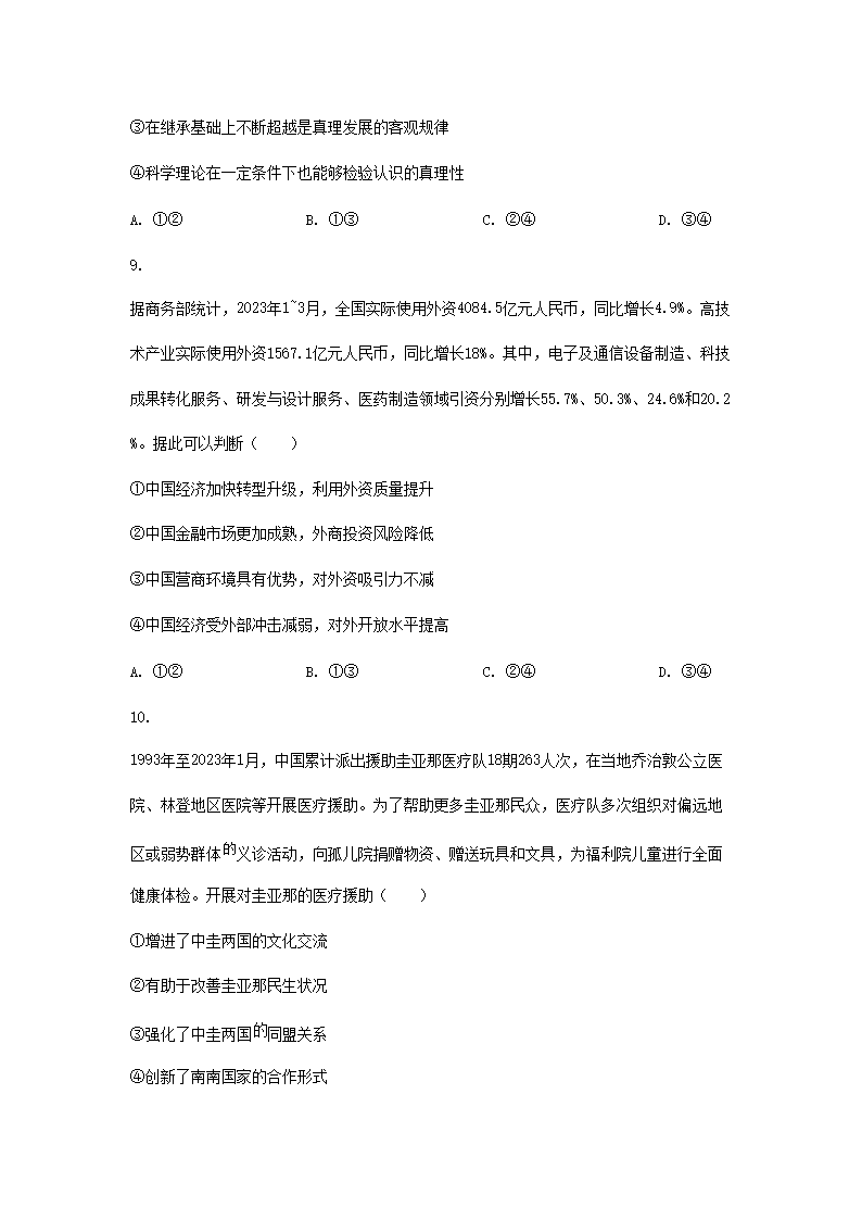 【文档名称】 2023年山西高考政治真题及答案(Word版).doc