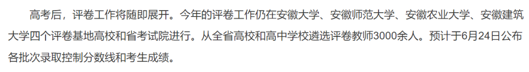 安徽:预计于6月24日公布考生成绩