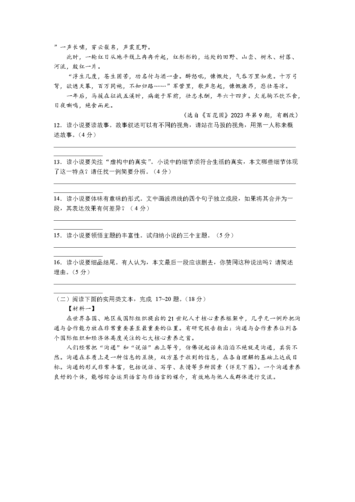 【文档名称】 2023年重庆巴南中考语文真题及答案(A卷)(Word版).doc