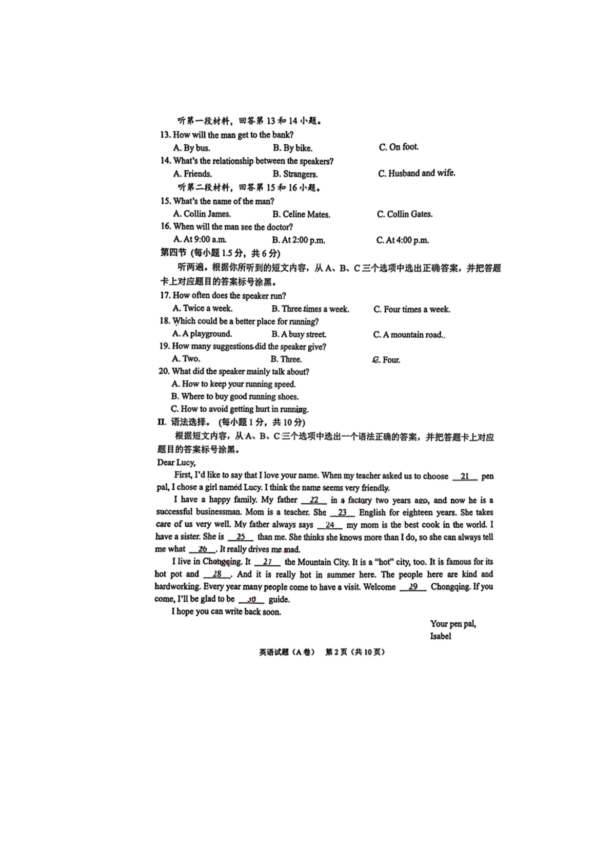 【文档预览】 无忧考网整理发布2023年重庆江北中考英语真题及答案(A卷)(图片版),前五页预览如下: