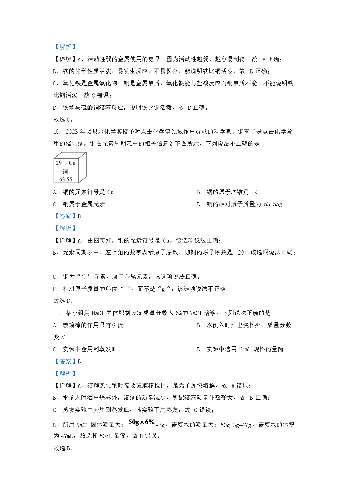 【文档名称】 2023年重庆中考化学真题及答案(B卷)(Word版).doc