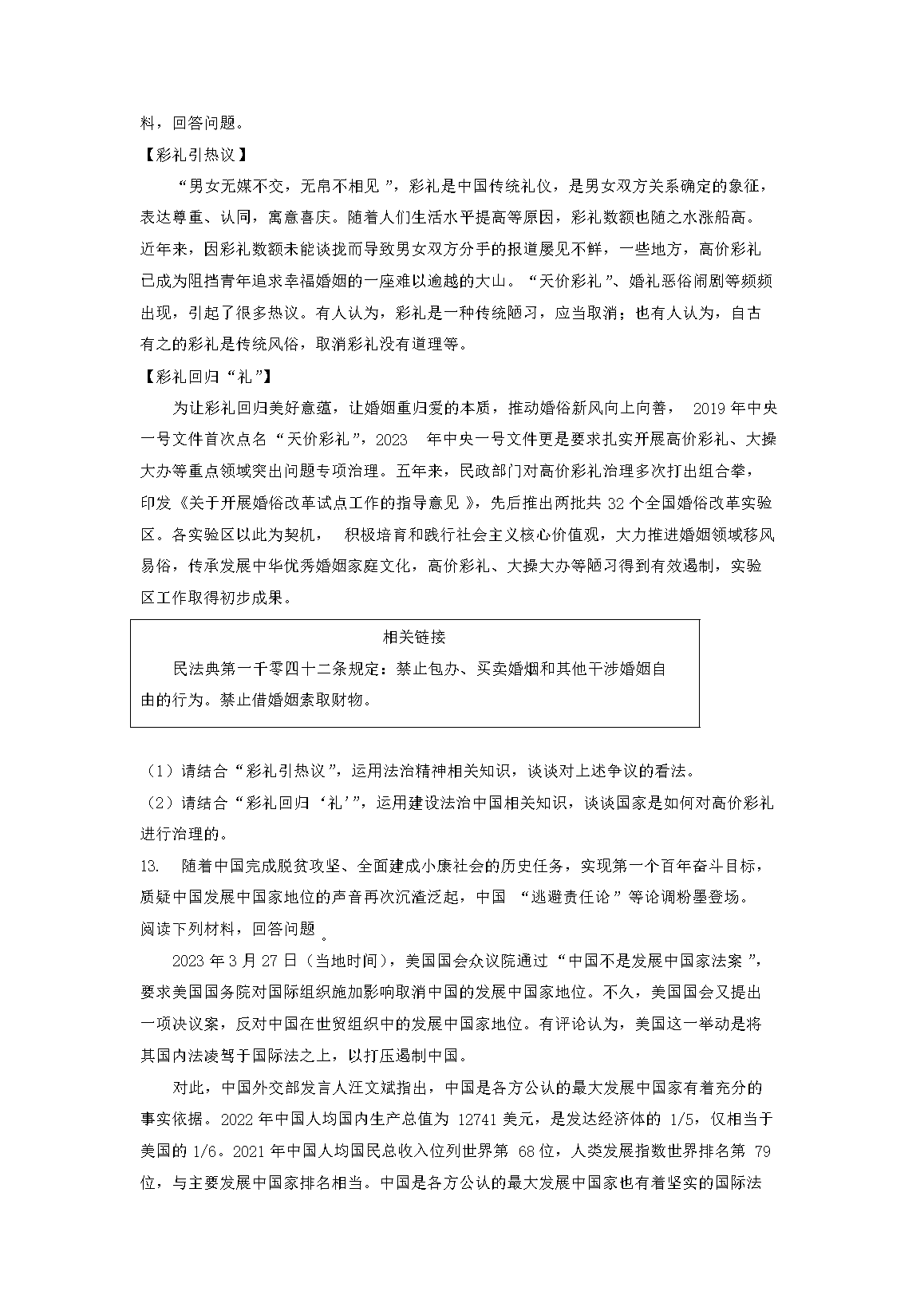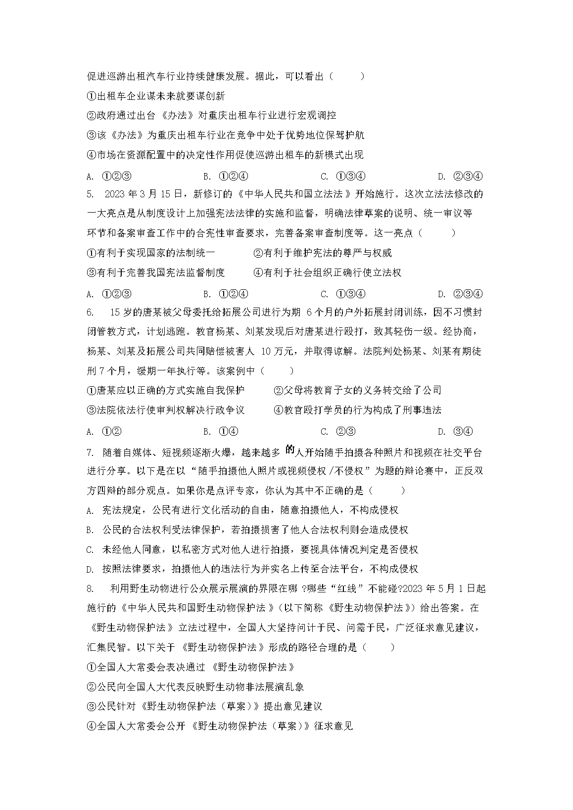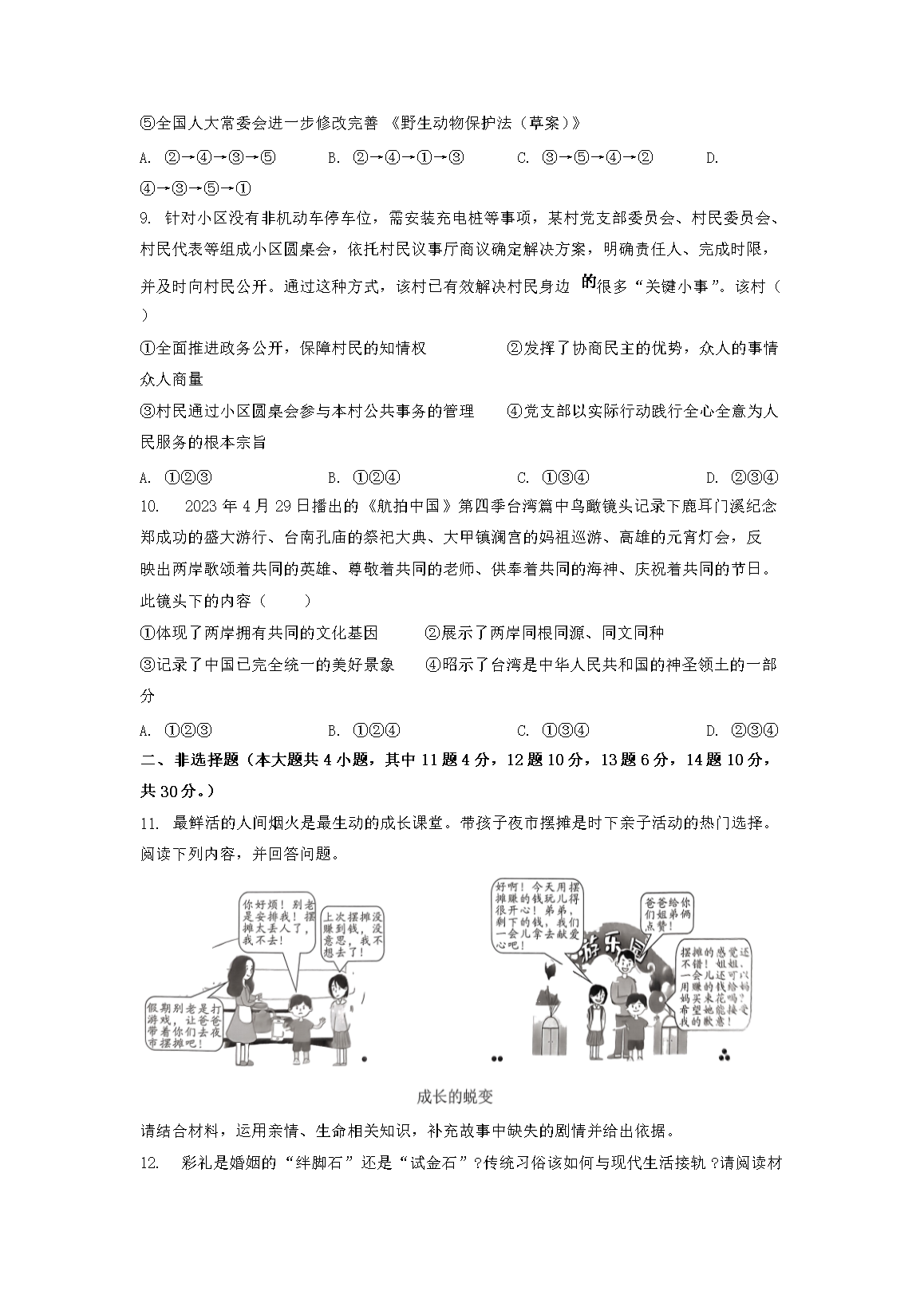 【文档名称】 2023年重庆北碚中考道德与法治真题及答案(B卷)(Word版).doc