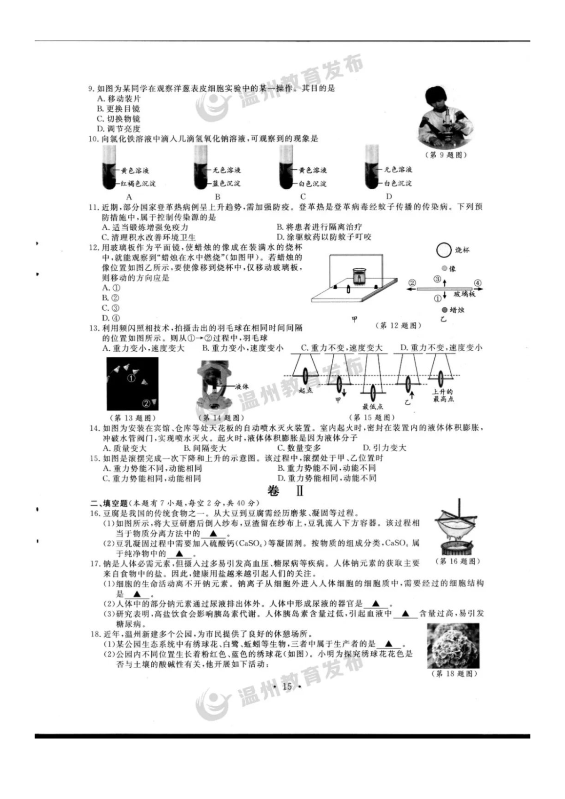 【文档名称】 2023年浙江温州中考科学真题及答案(图片版).doc