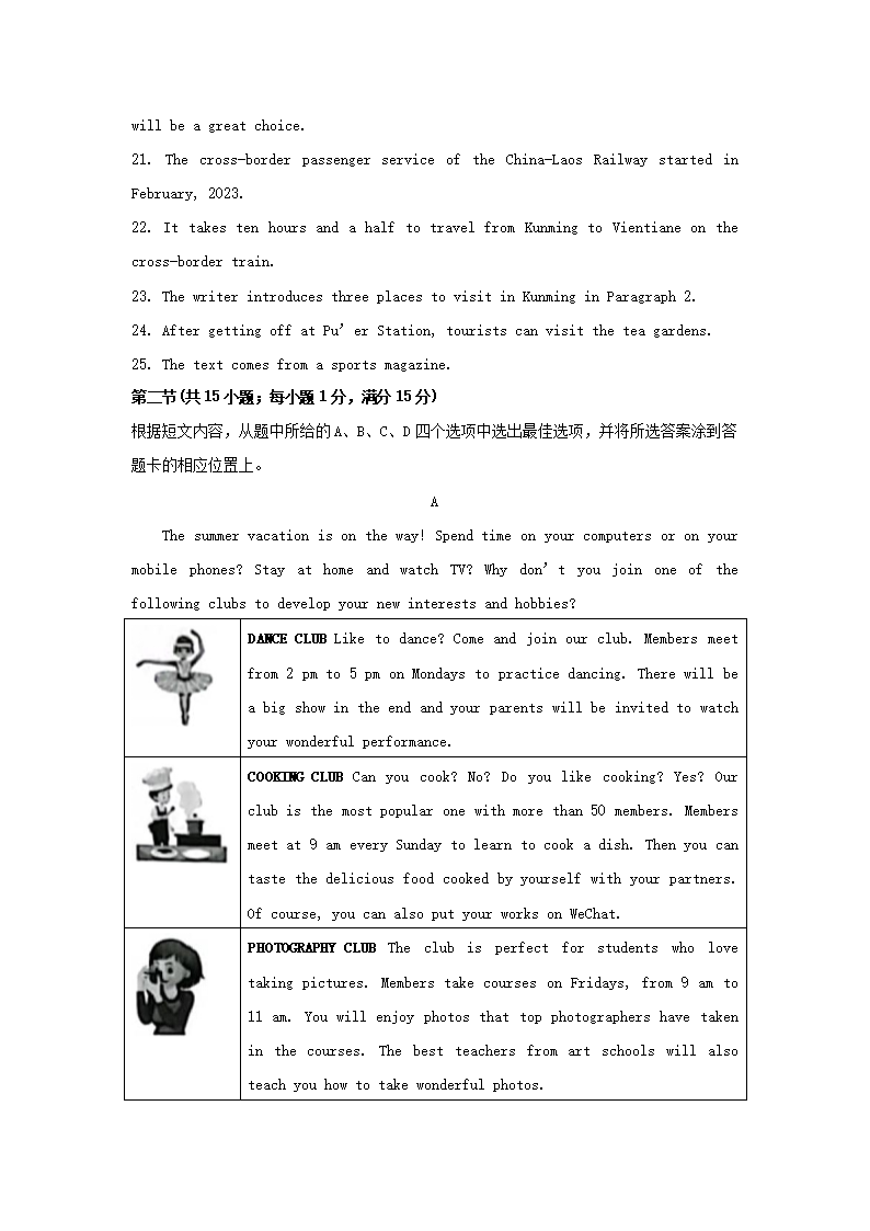 【文档预览】 无忧考网整理发布2023年云南中考英语试题及答案(Word版),前五页预览如下: