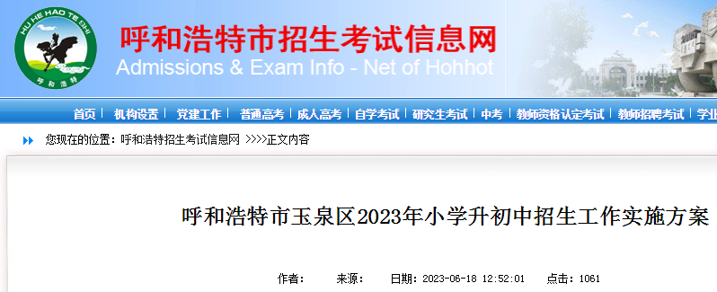 原文标题:呼和浩特市玉泉区2023年小学升初中招生工作实施方案