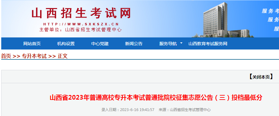 原文标题:山西省2023年普通高校专升本考试普通批院校征集志愿公告(三)投档低分