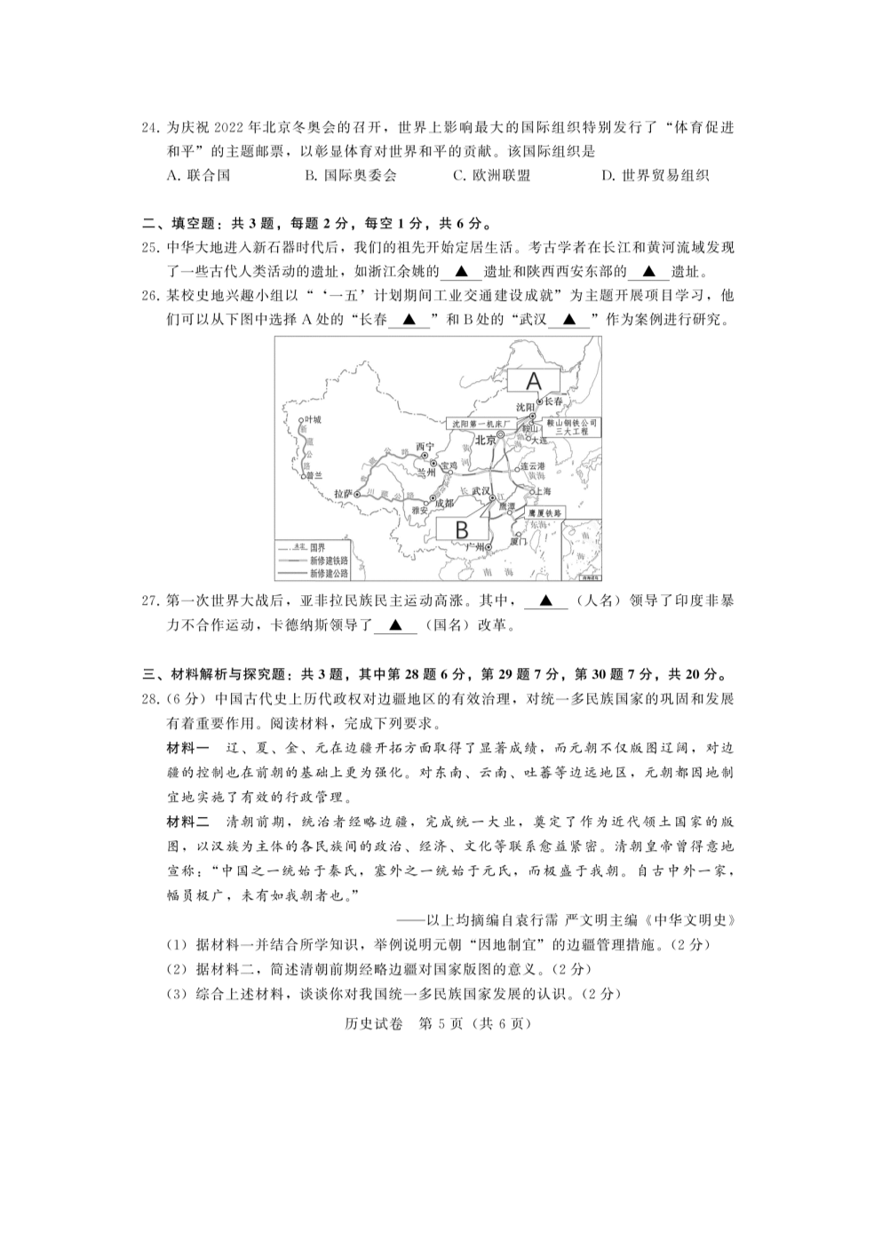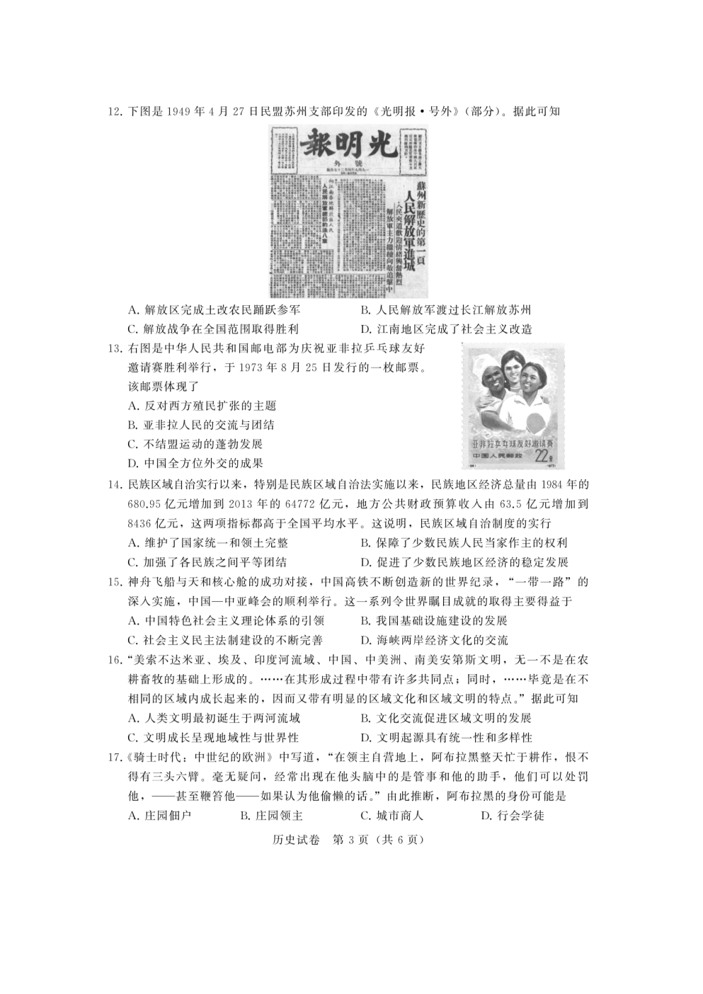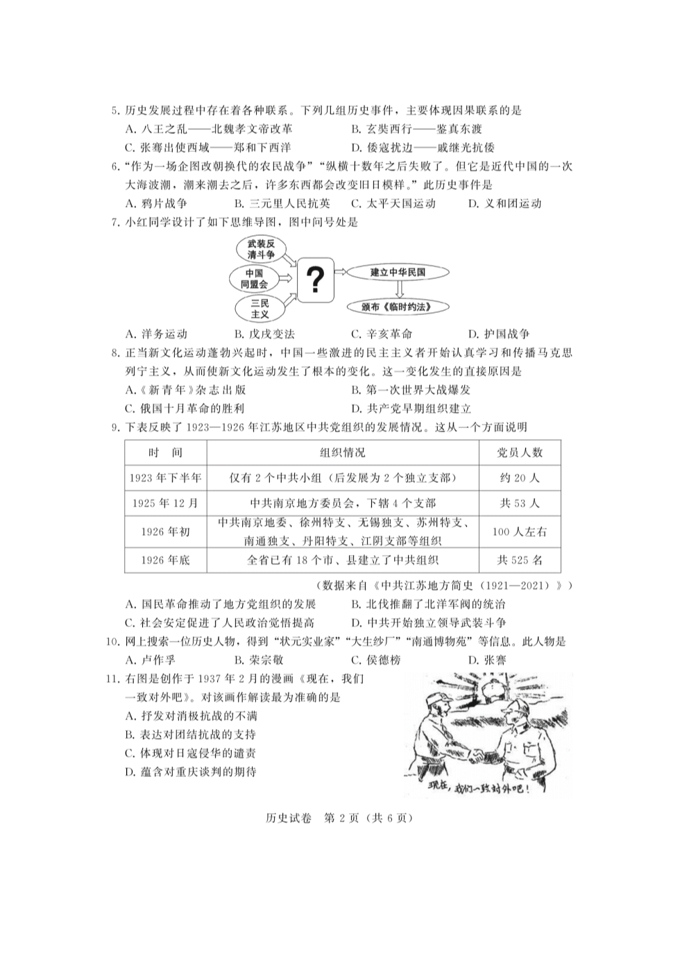 【文档名称】 2023年江苏苏州中考历史试题及答案(图片版).doc