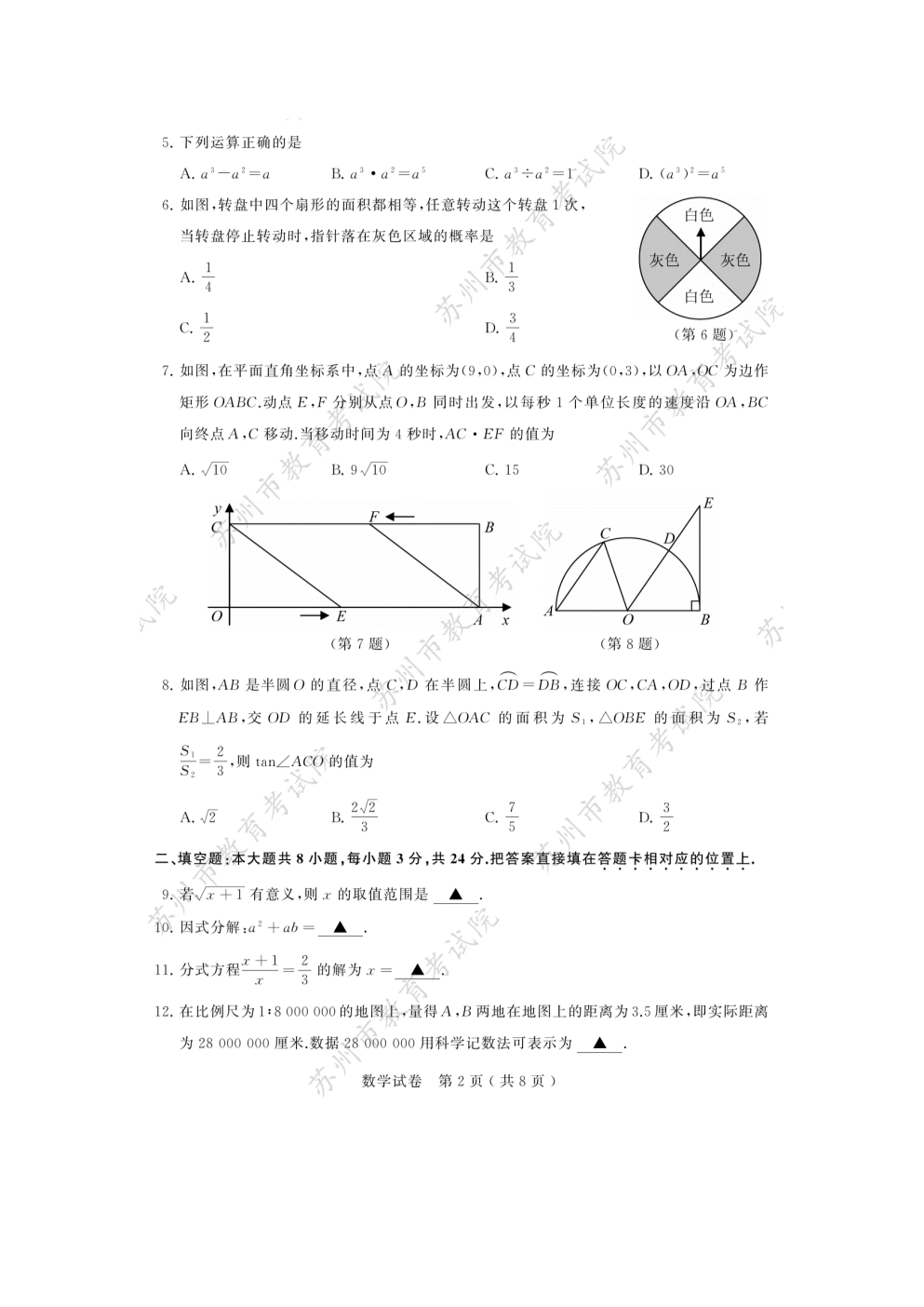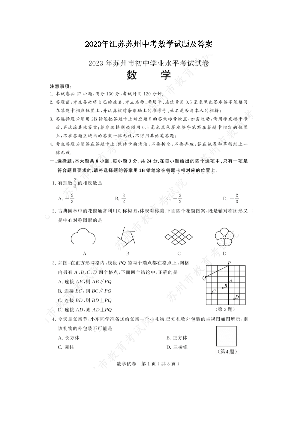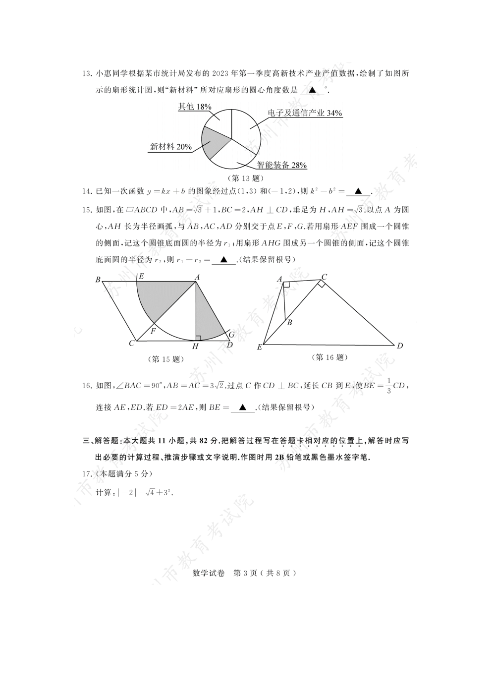 【文档名称】 2023年江苏苏州中考数学试题及答案(图片版).doc
