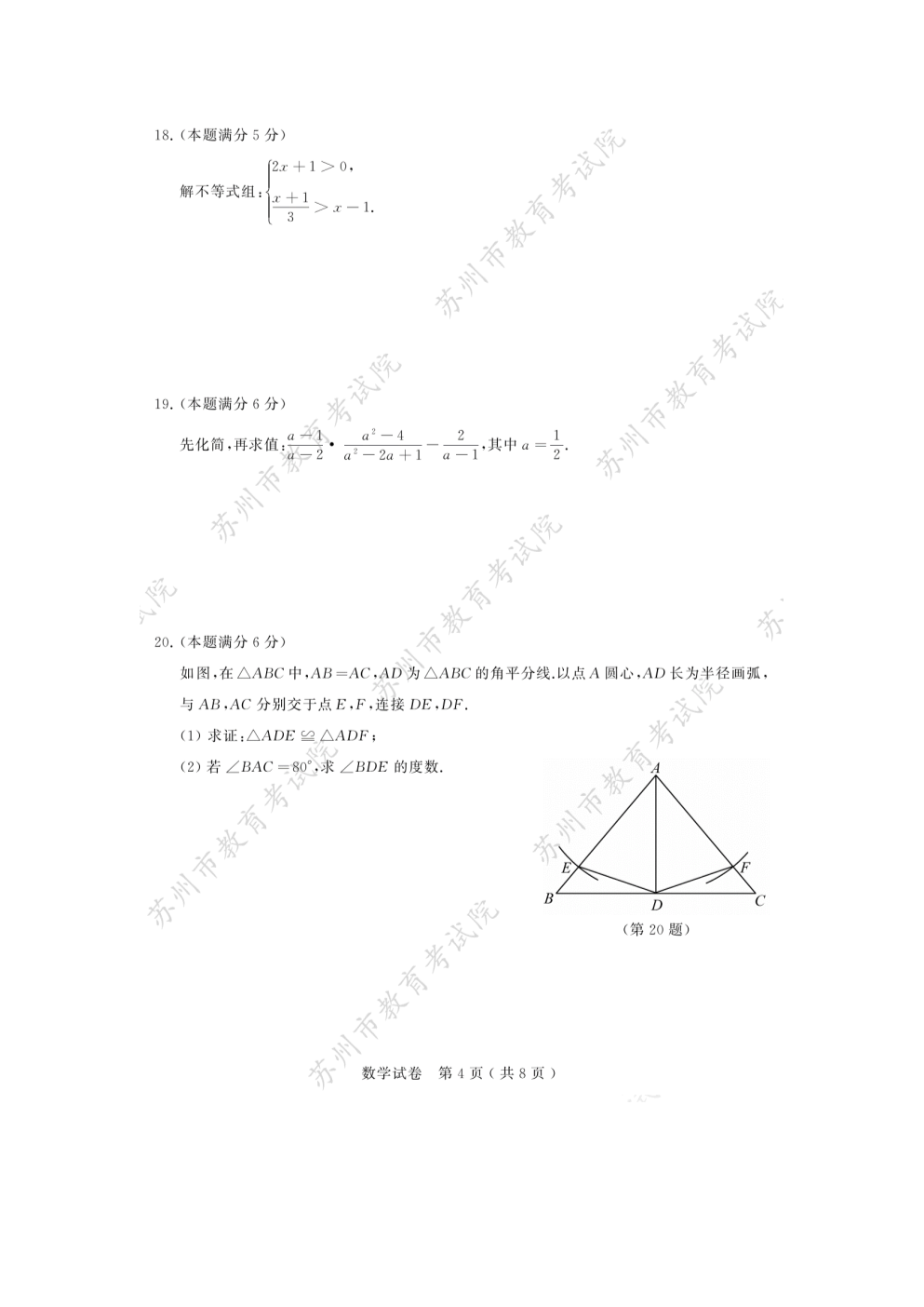 【文档预览】 无忧考网整理发布2023年江苏苏州中考数学试题及答案(图片版),前五页预览如下: