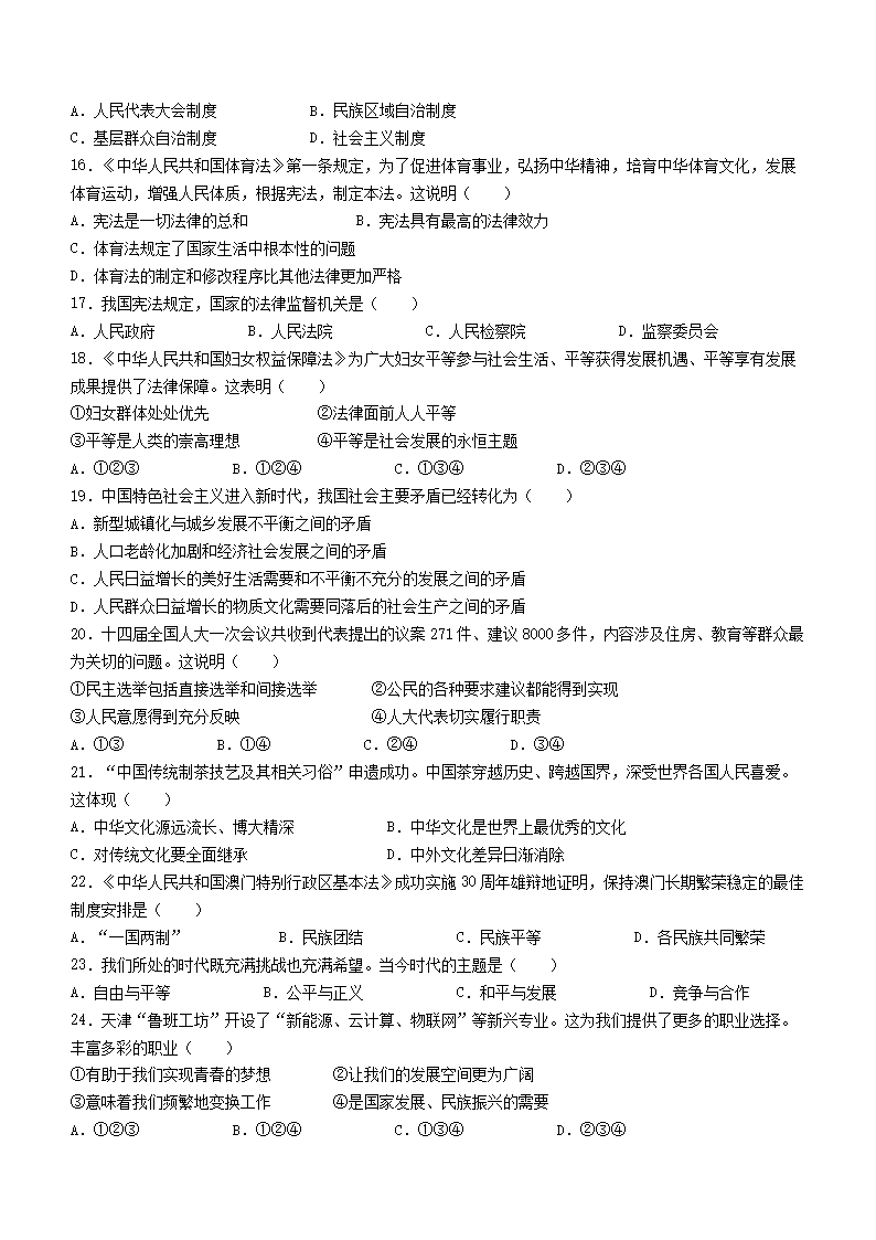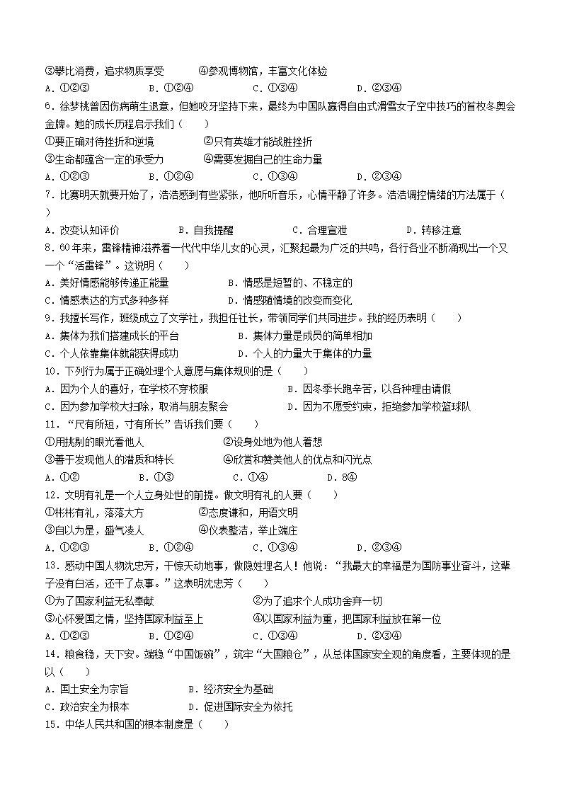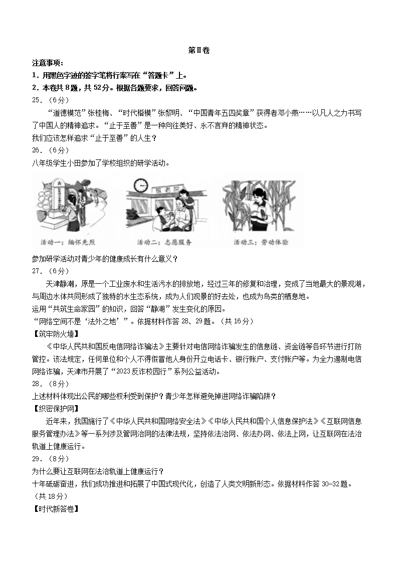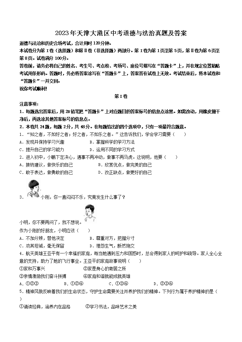 【文档名称】 2023年天津大港区中考道德与法治真题及答案(Word版).doc