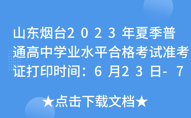 山东烟台2023年夏季普通高中学业水平合格考试准考证打印入口 点击进入