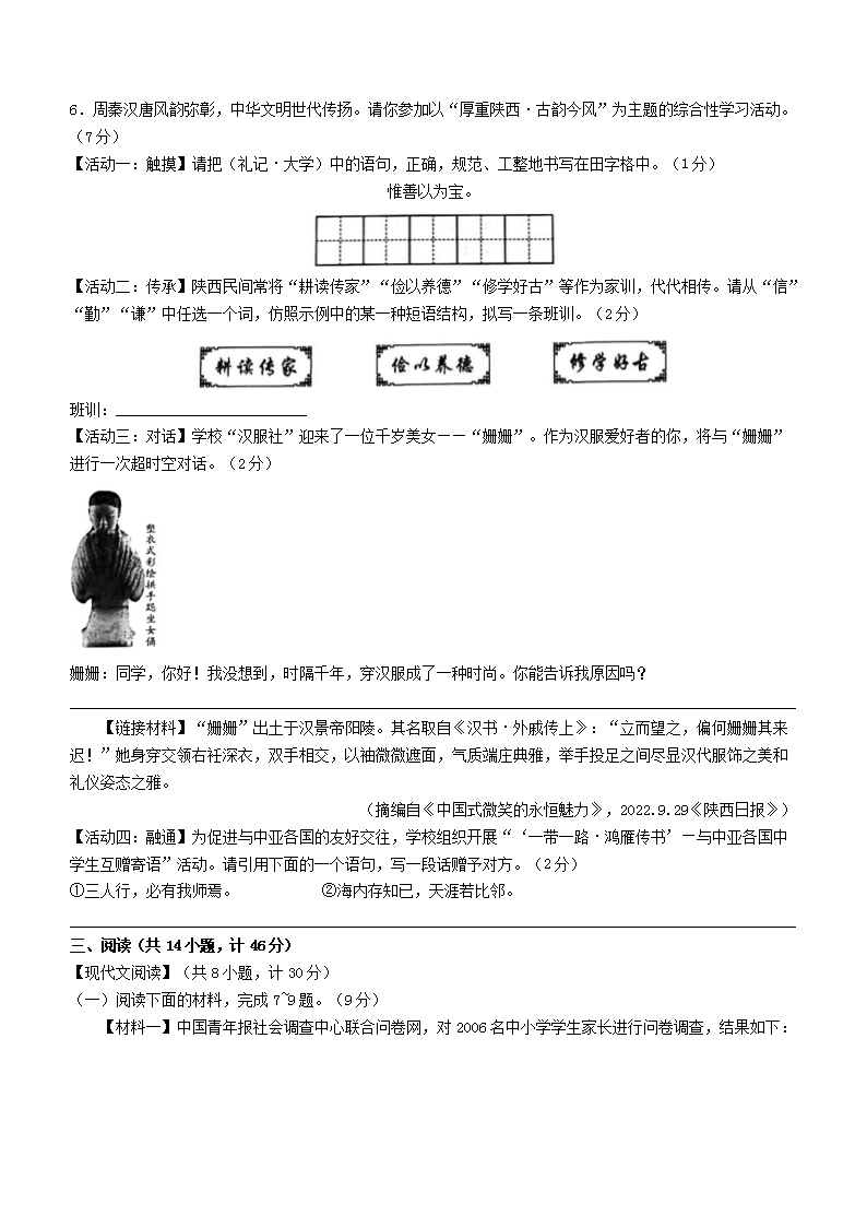 【文档名称】 2023年陕西中考语文真题及答案(Word版).doc