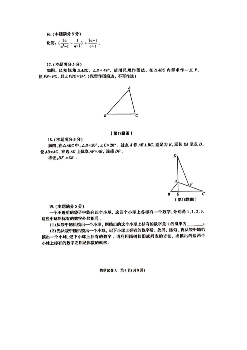 【文档预览】 无忧考网整理发布2023年陕西中考数学真题及答案(A卷)(图片版),前五页预览如下: