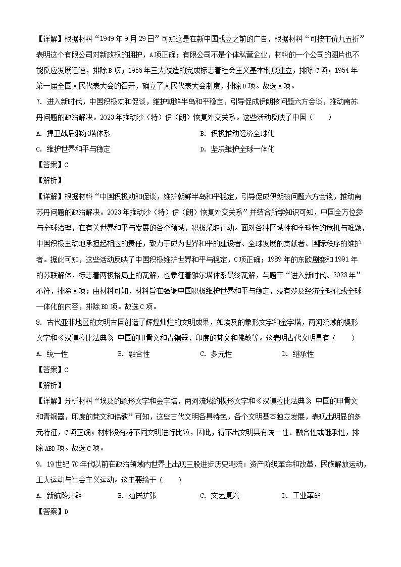 【文档名称】 2023年四川眉山中考历史真题及答案(Word版).doc