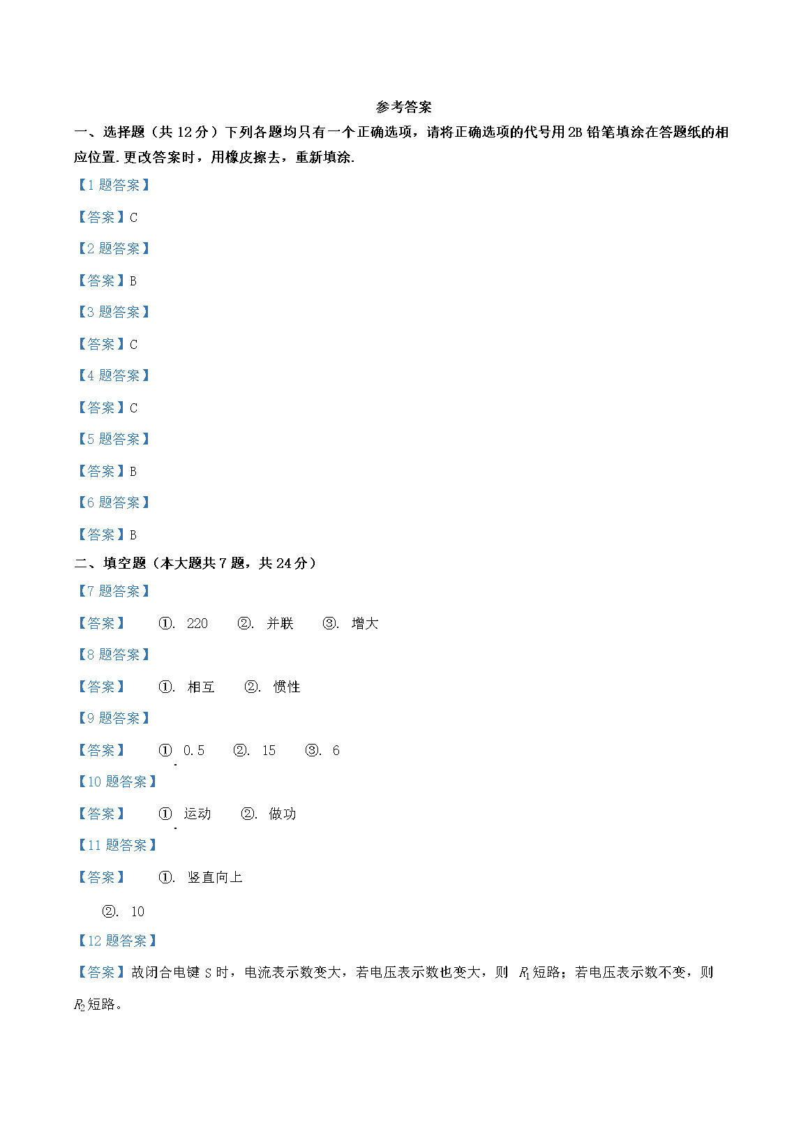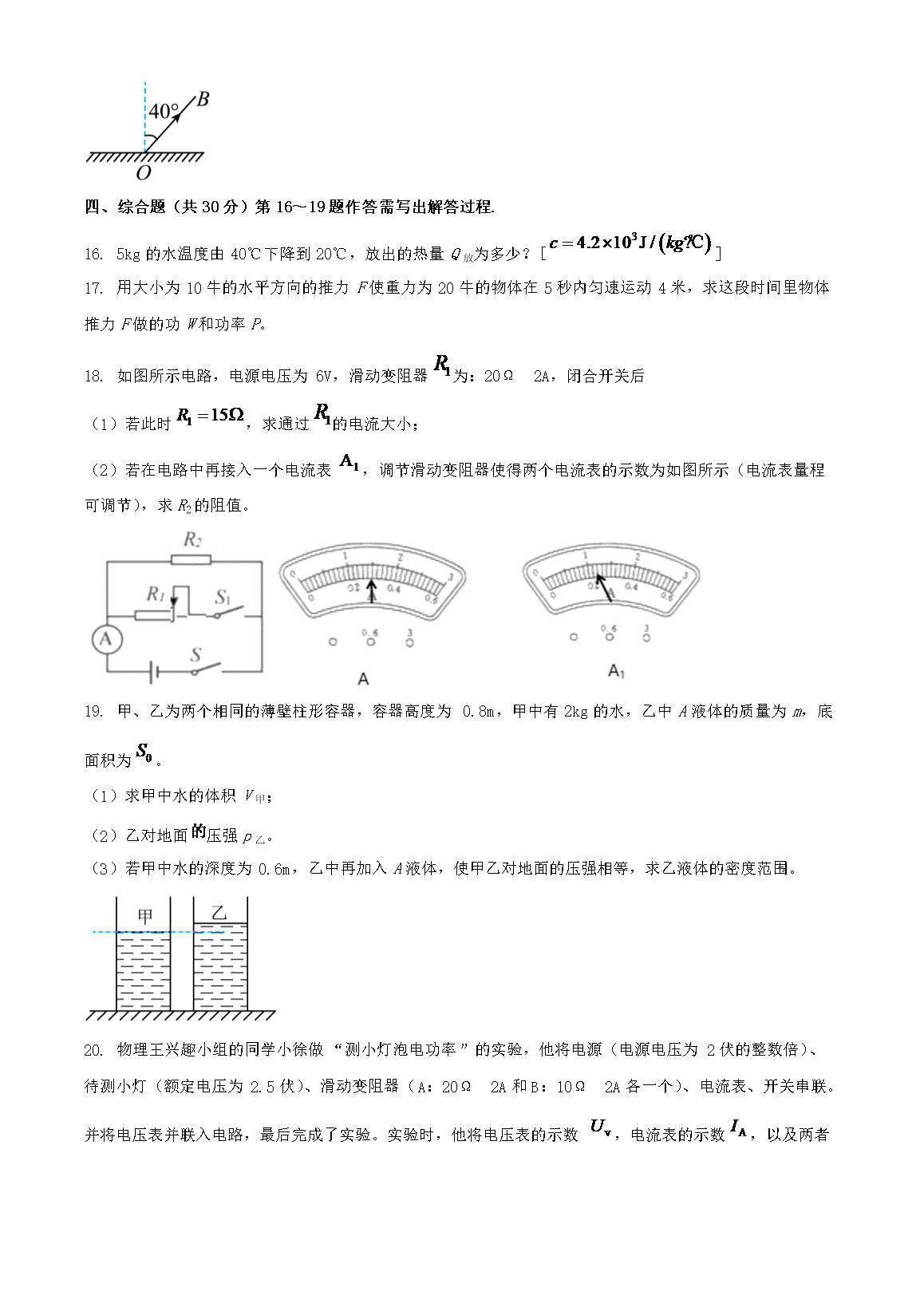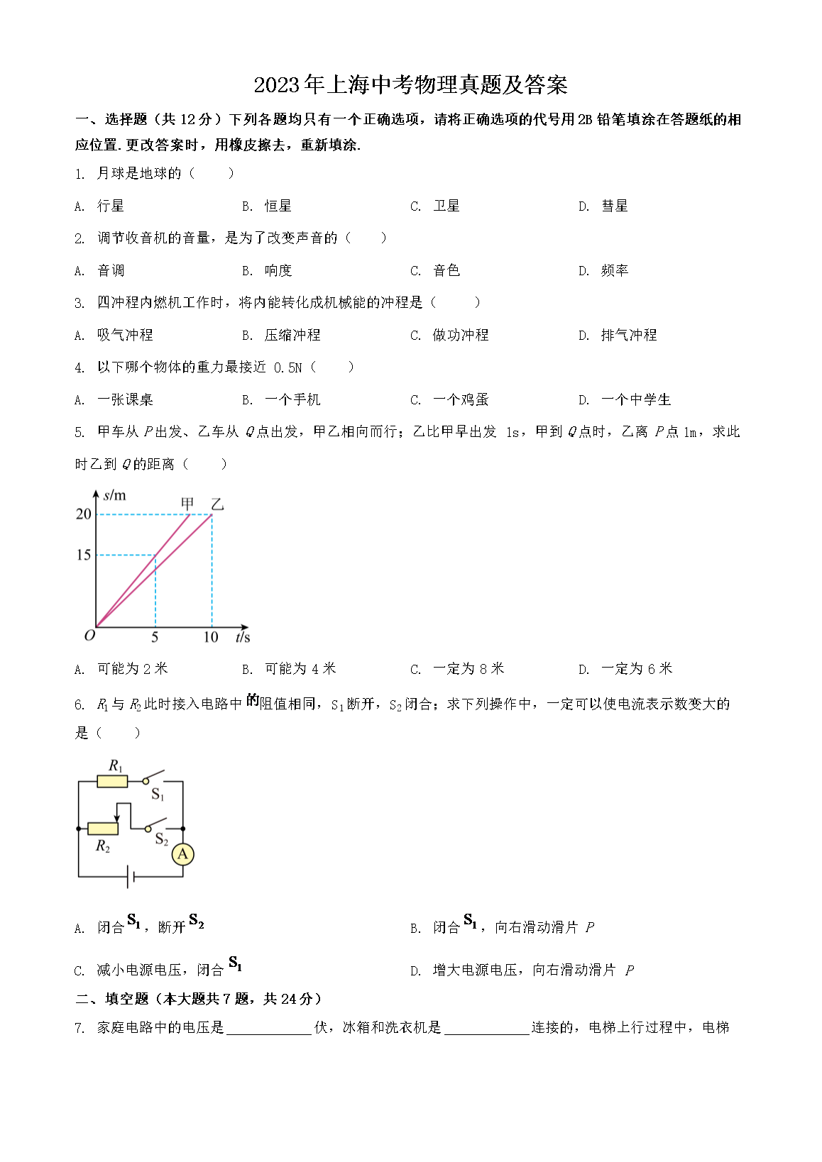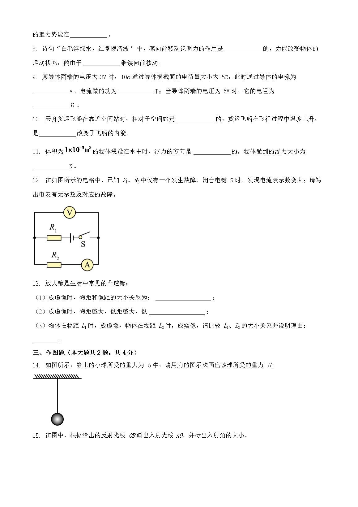 【文档名称】 2023年上海中考物理真题及答案(Word版).doc