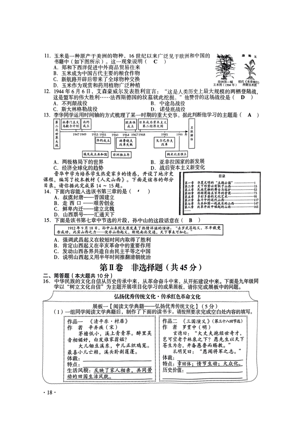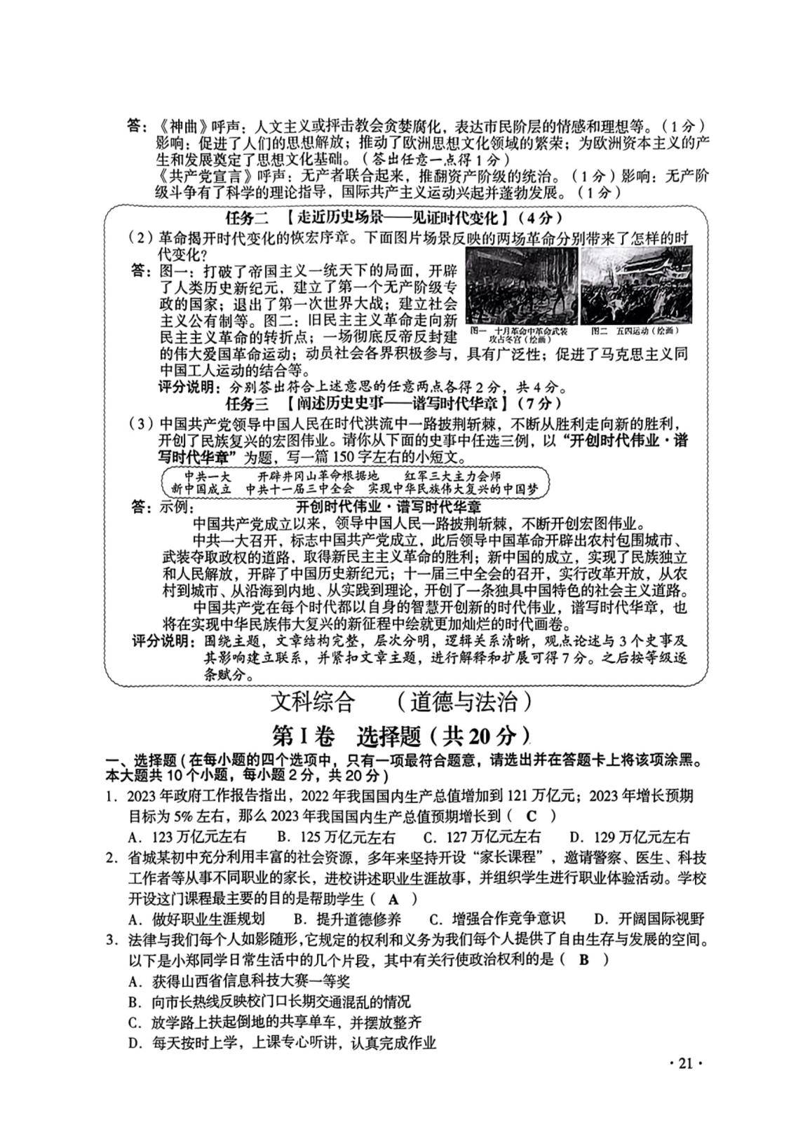 【文档名称】 2023年山西晋城中考文科综合真题及答案(图片版).doc