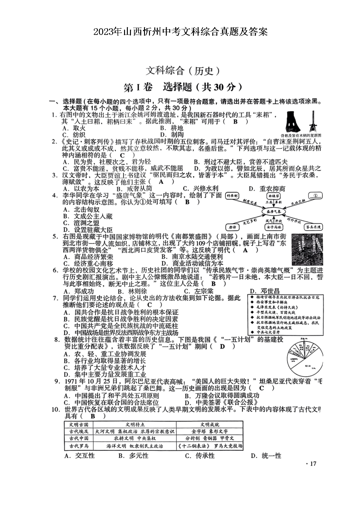 【文档预览】 无忧考网整理发布2023年山西忻州中考文科综合真题及答案(图片版),前五页预览如下: