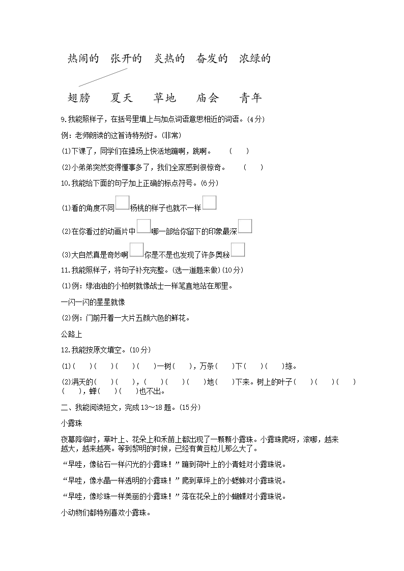 - 2024-2025学年广东省深圳市罗湖区小学二年级上册语文第一次月考试题及答案