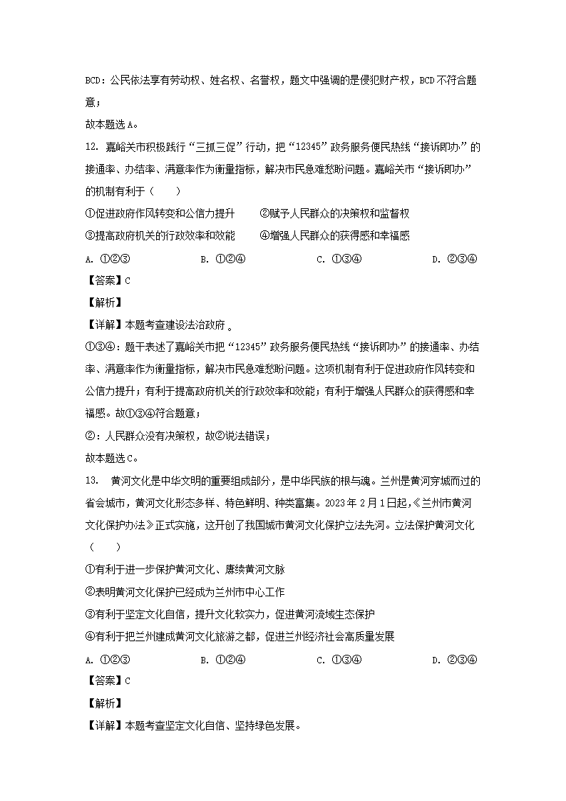 【文档名称】 2023年甘肃天水中考道德与法治试题及答案(Word版).doc