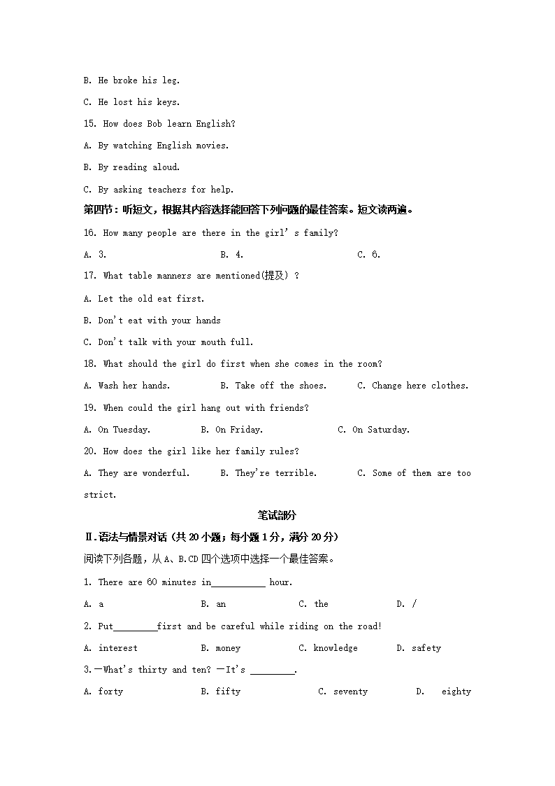 【文档名称】 2023年甘肃天水中考英语试题及答案(Word版).doc