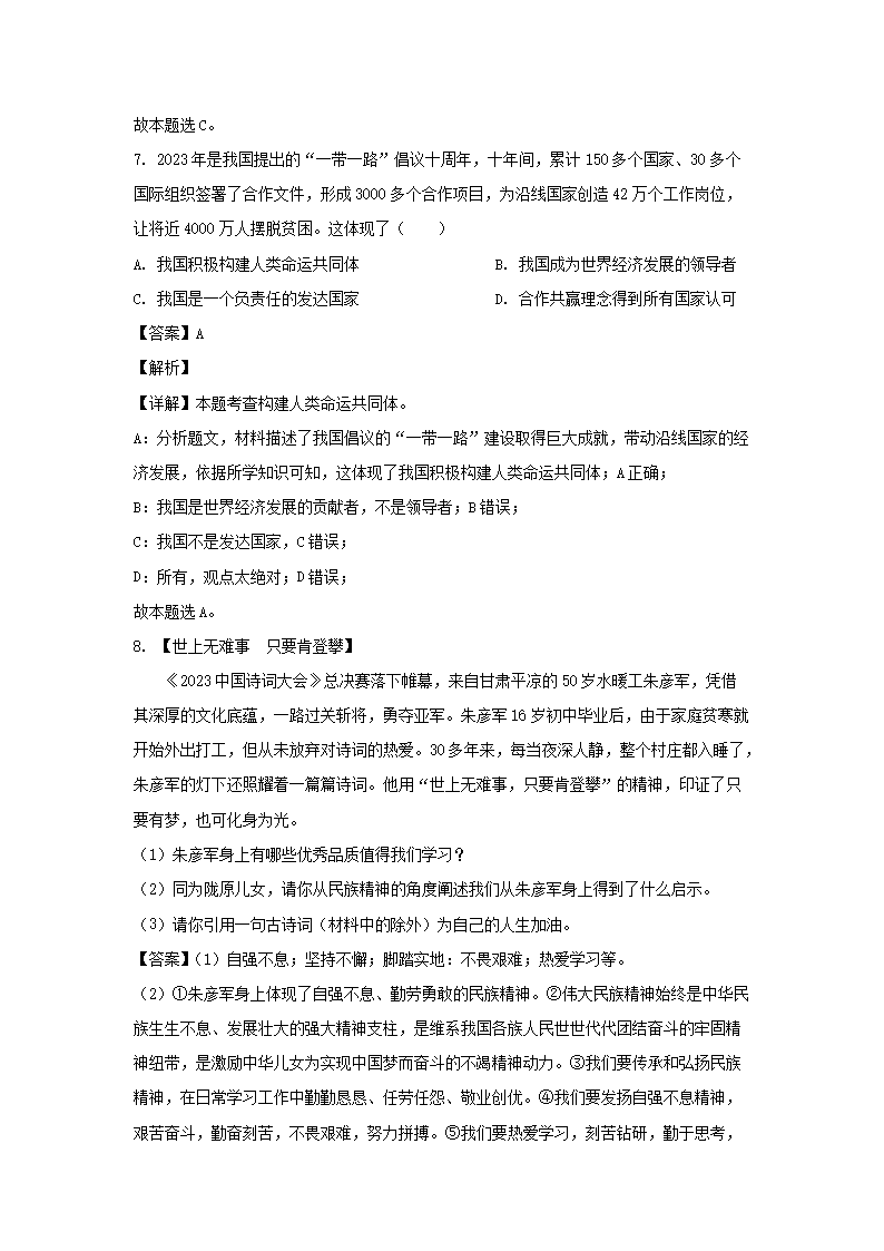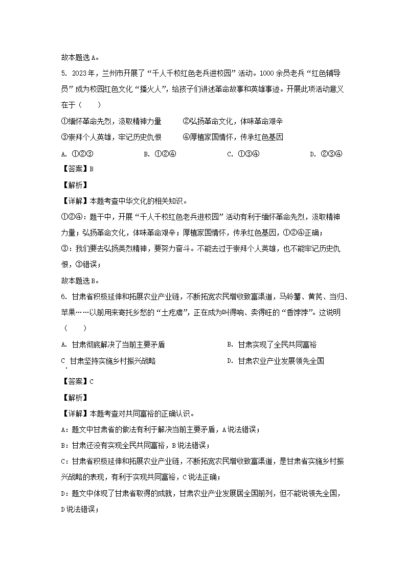 【文档名称】 2023年甘肃临夏中考道德与法治试题及答案(Word版).doc