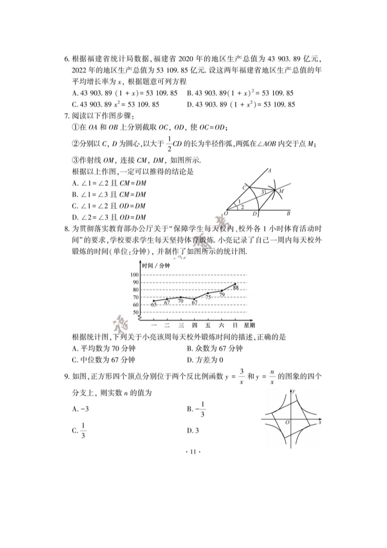 【文档名称】 2023年福建宁德中考数学试题及答案(图片版).doc