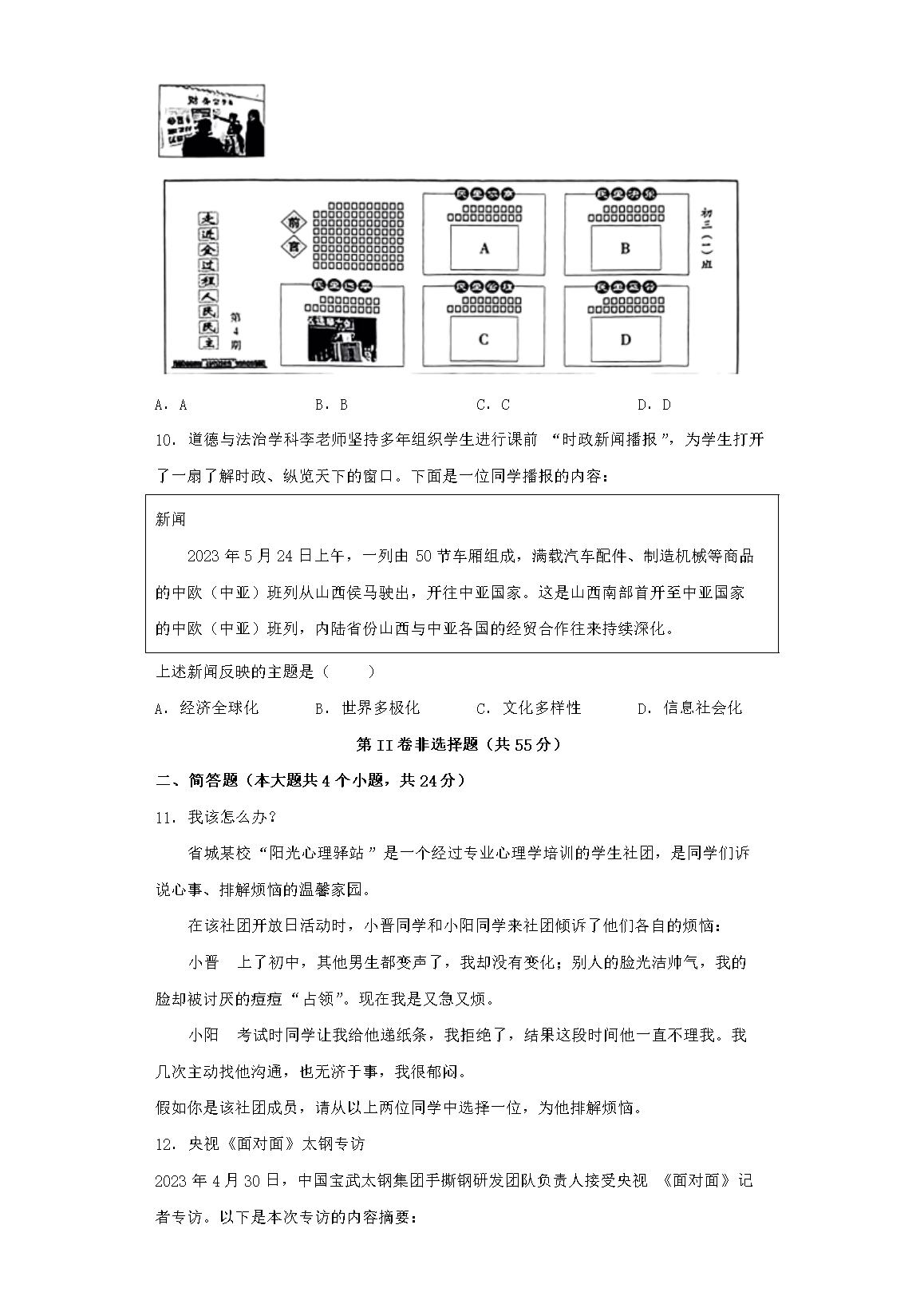 【文档名称】 2023年山西运城中考道德与法治试题及答案(Word版).doc