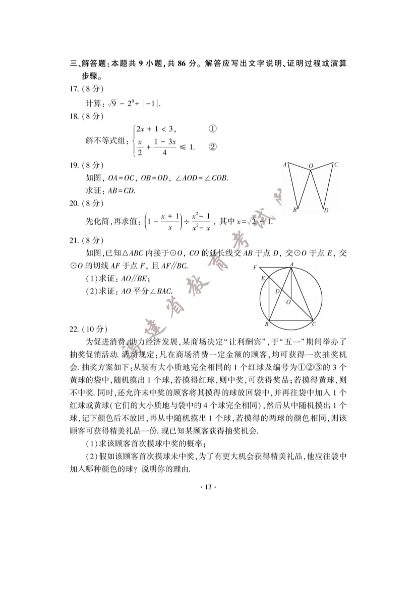 【文档预览】 无忧考网整理发布2023年福建漳州中考数学试题及答案(图片版),前五页预览如下: