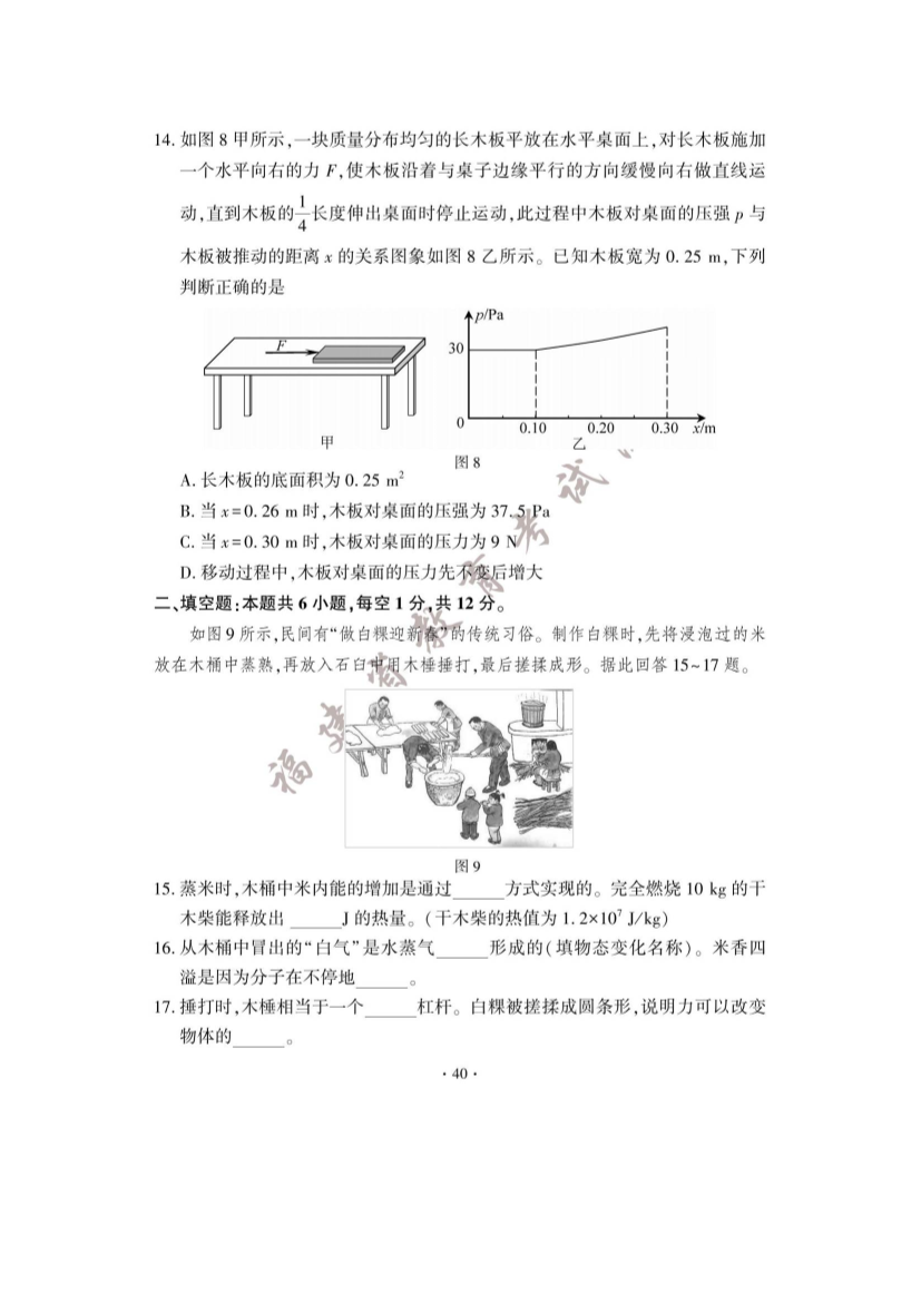【文档名称】 2023年福建漳州中考物理试题及答案(图片版).doc