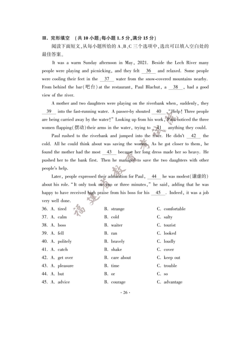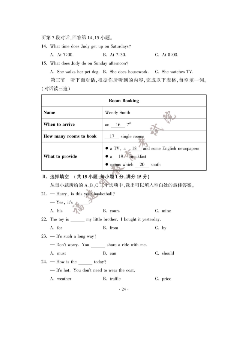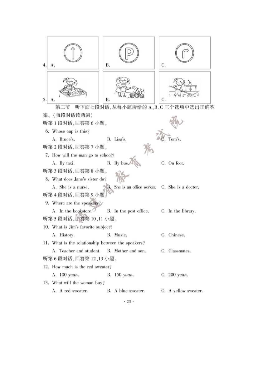 【文档预览】 无忧考网整理发布2023年福建漳州中考英语试题及答案(图片版),前五页预览如下: