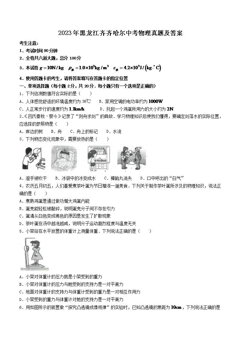 【文档名称】 2023年黑龙江齐齐哈尔中考物理真题及答案(Word版).doc