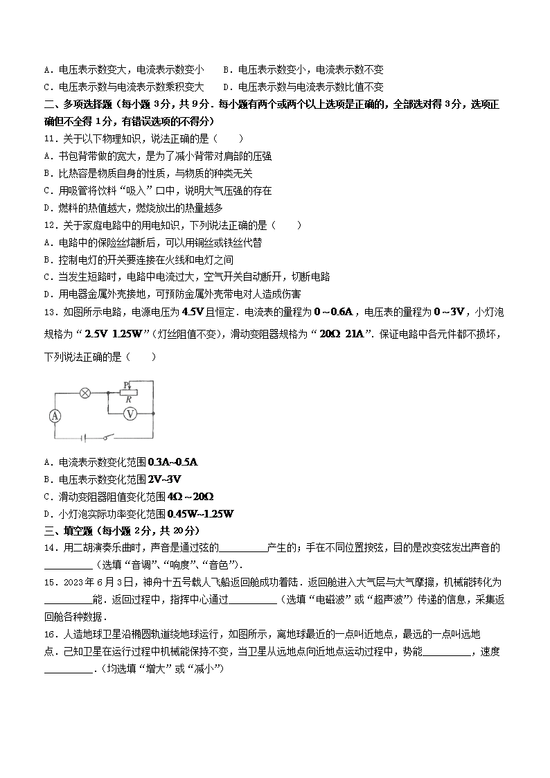 【文档预览】 无忧考网整理发布2023年黑龙江齐齐哈尔中考物理真题及答案(Word版),前五页预览如下:
